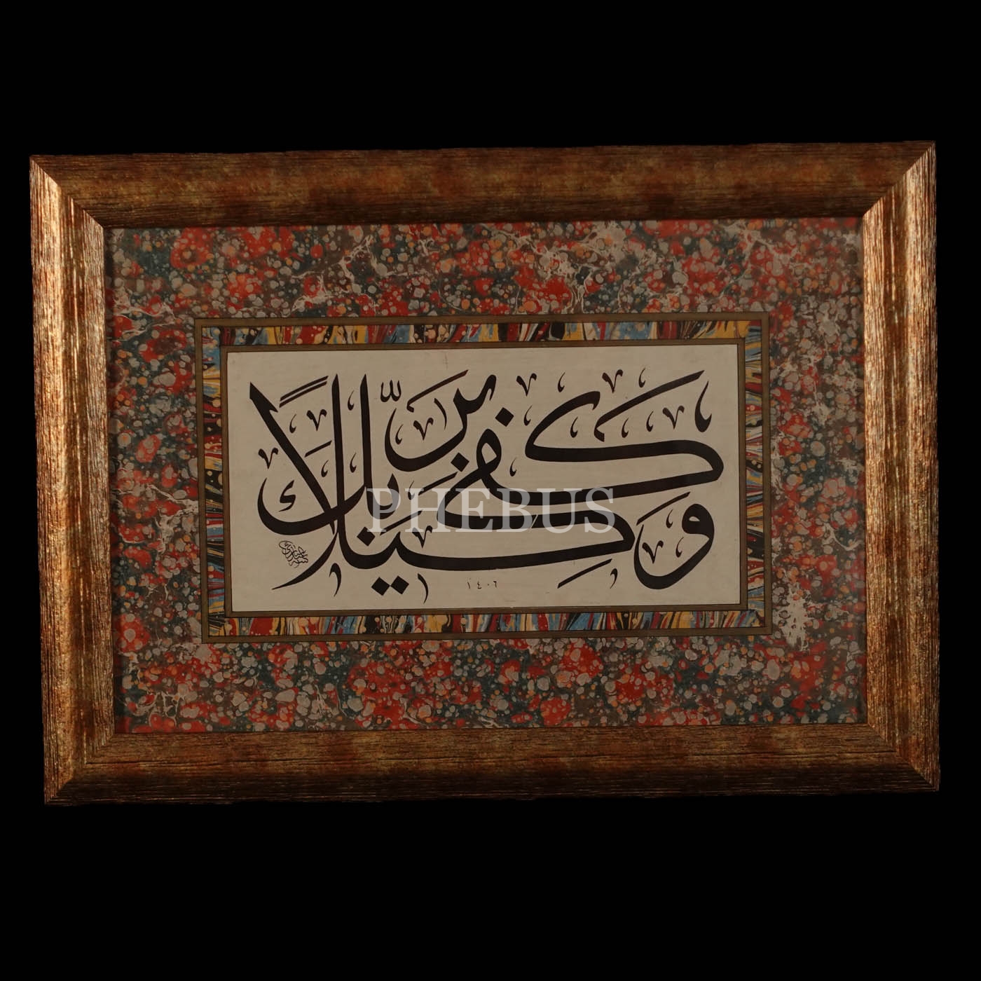 "Güvenip dayanmak için rabbin yeter." anlamına gelen, İsra Suresi´nin 65. ayeti "vekefâ birabbike vekîlân" yazılıdır.