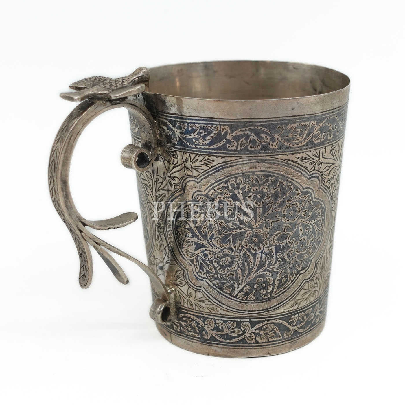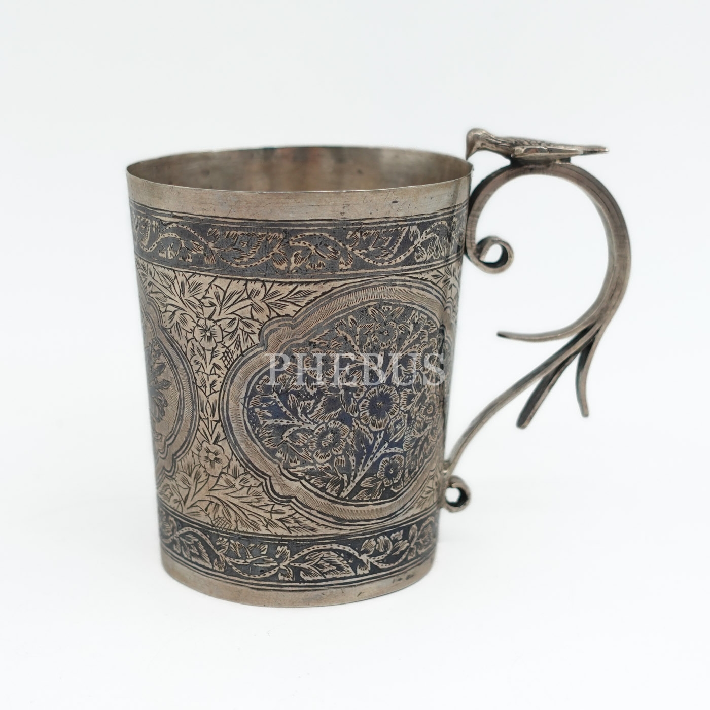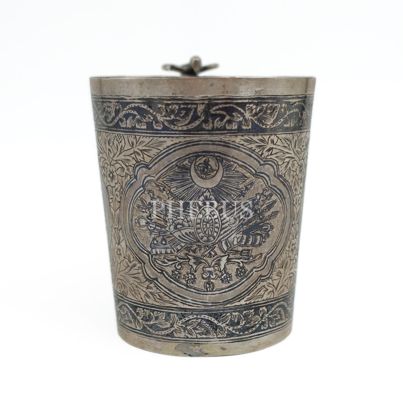 Osmanlı hanedan armalı ve kuşlu, gümüş savatlı bardak, 8 cm yükseklik, 123 gr...