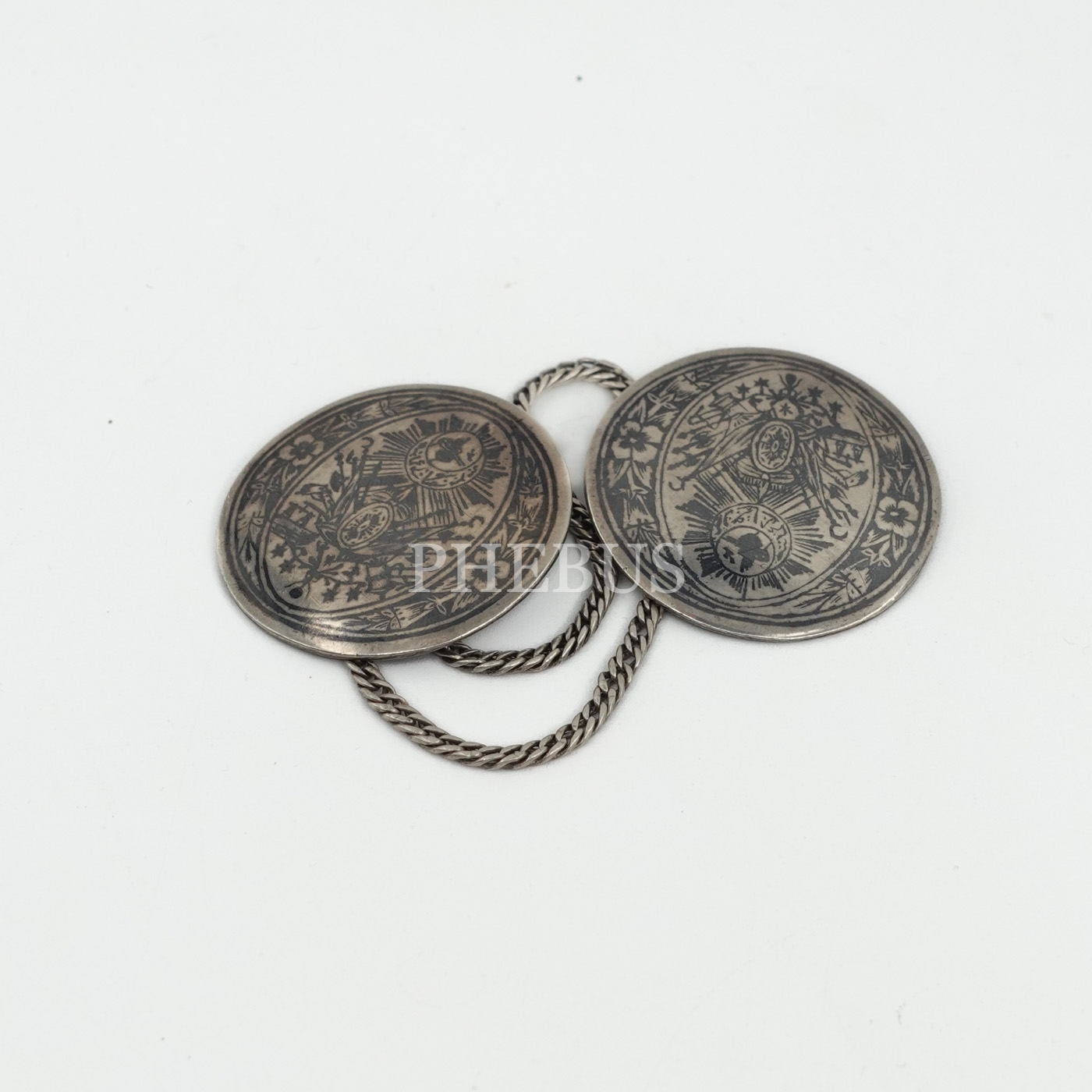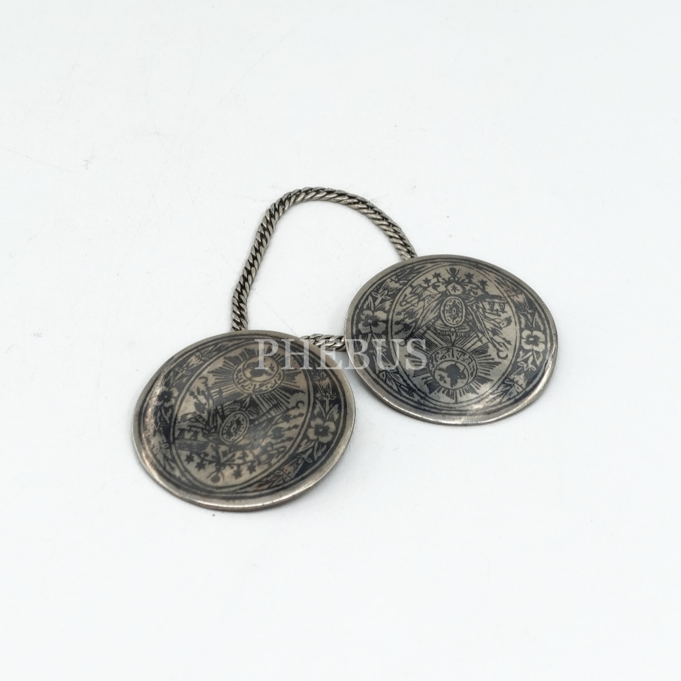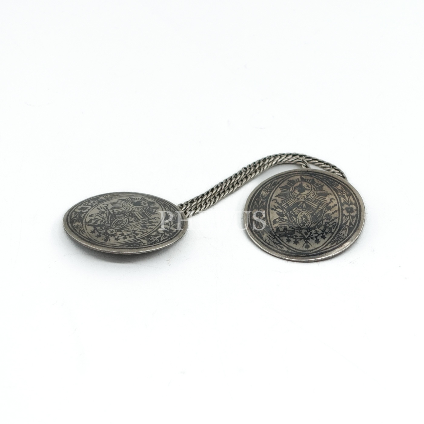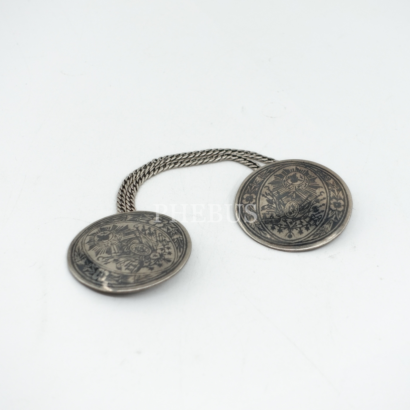 Osmanlı dönemi, gümüş üzerine savat işçilikli hanedan arması görselli pelerin düğmesi, 22 gr...