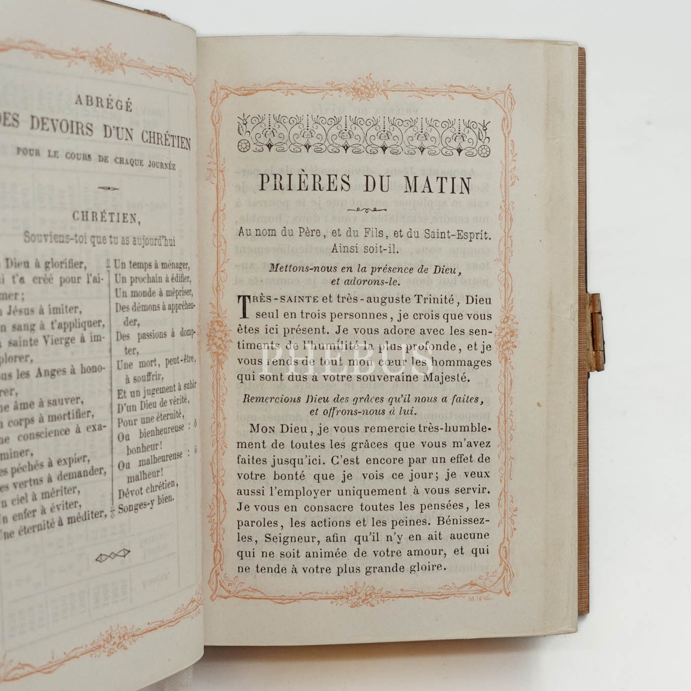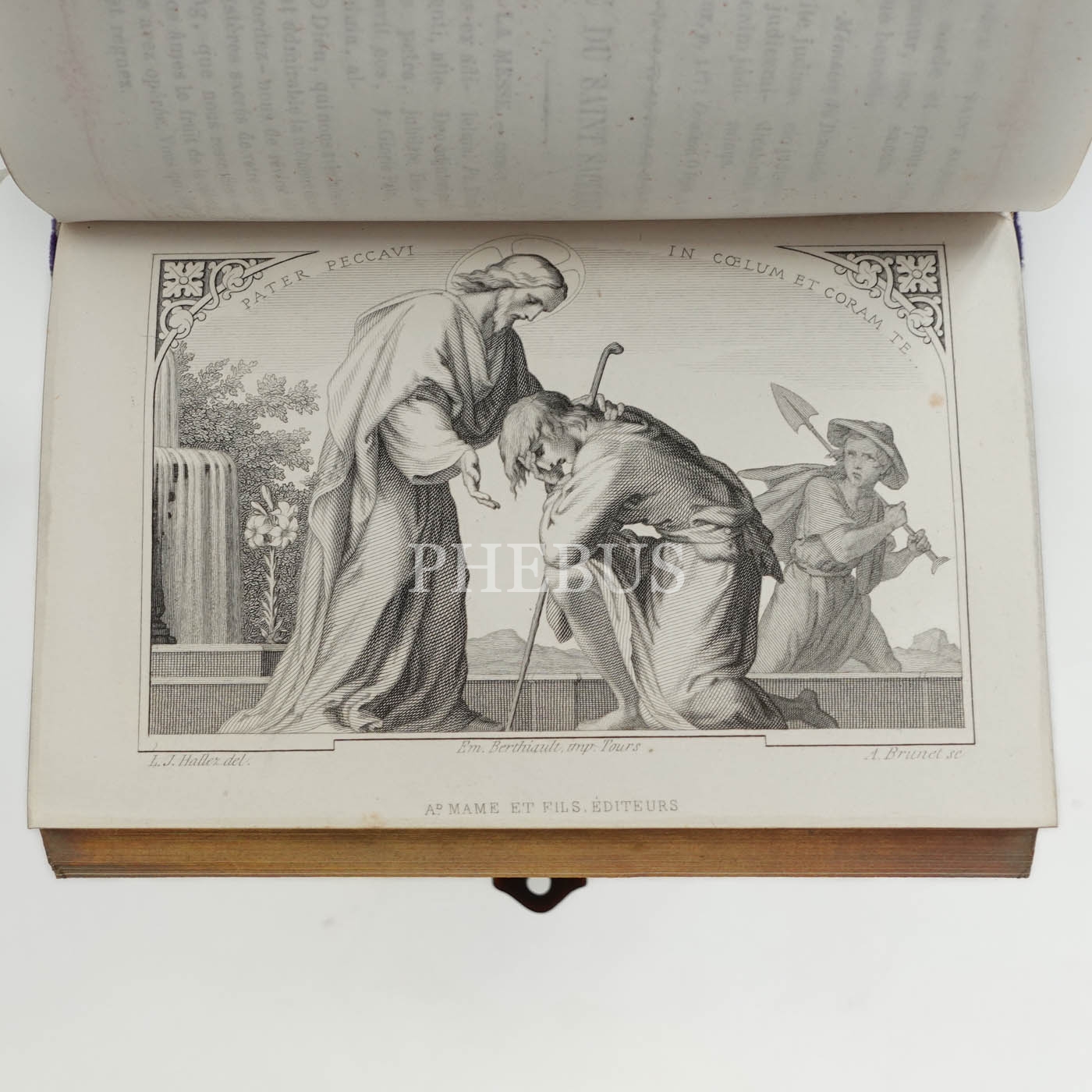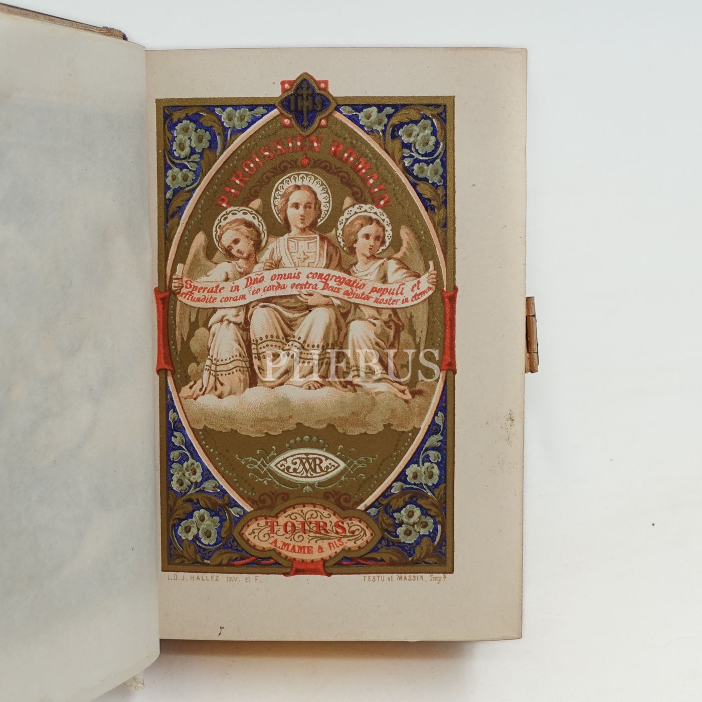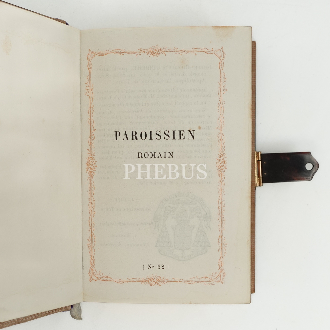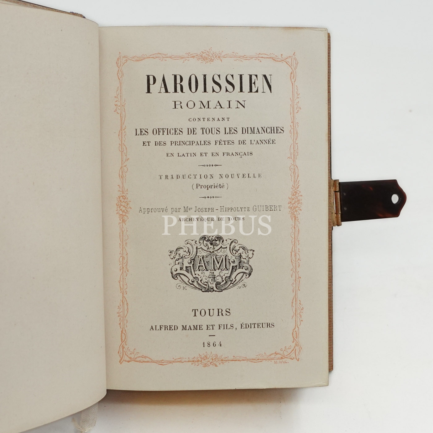 Bağa ve altın geçmeli ciltli, kilit mekanizmalı Fransızca dini kitap, PAROISSIEN ROMAIN: Contenant les Offices de Tous les Dimanches Et des Principales Fetes de l´Annee en Latin Et en Francais, 1864, Alfred Mame et Fils, Editeurs, Tours, 540 sayfa, 8x11,5 cm...