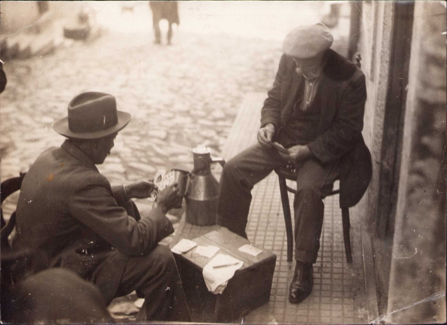 Sokakta iskambil oynayan beyefendiler, bir kenarı kırık, 17x11 cm