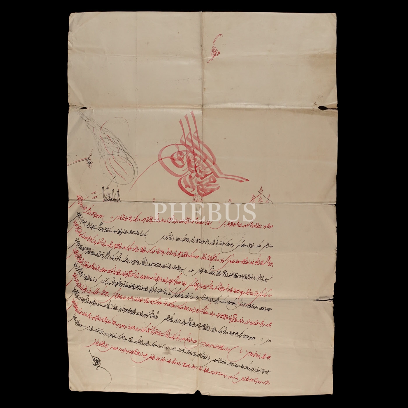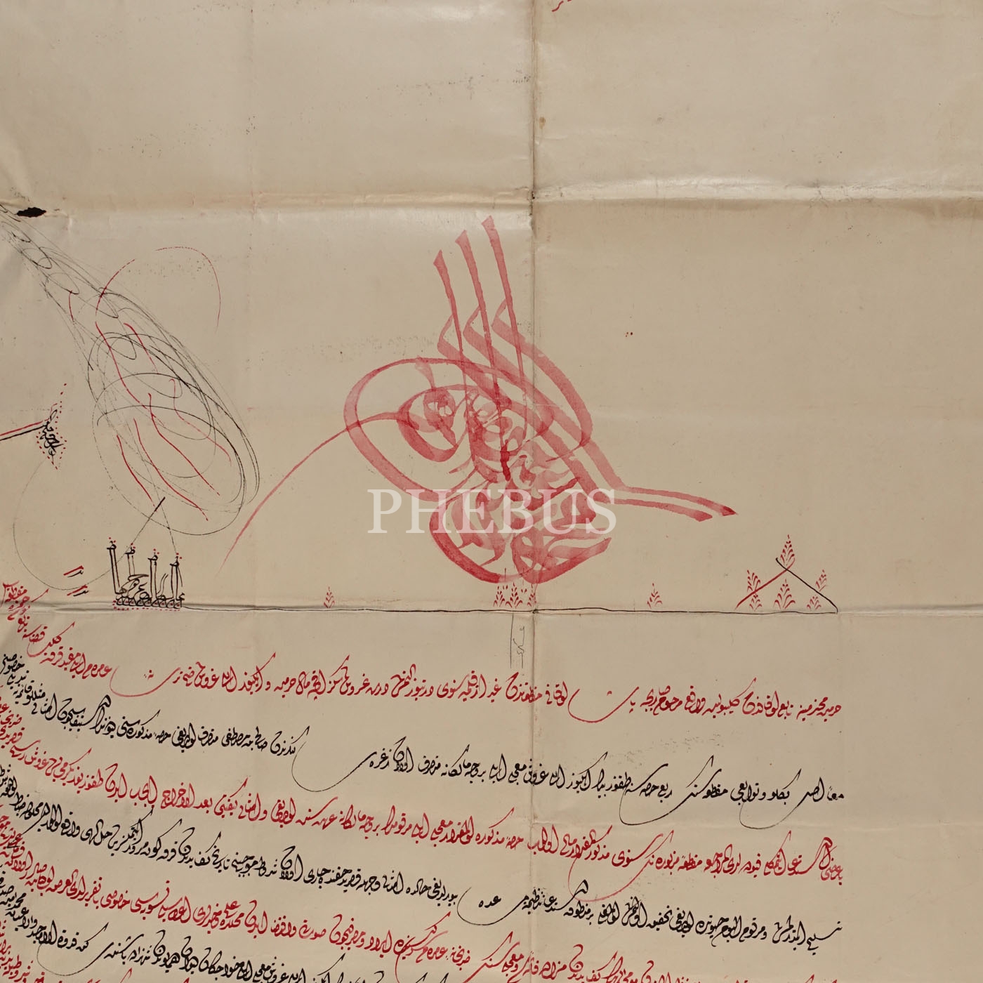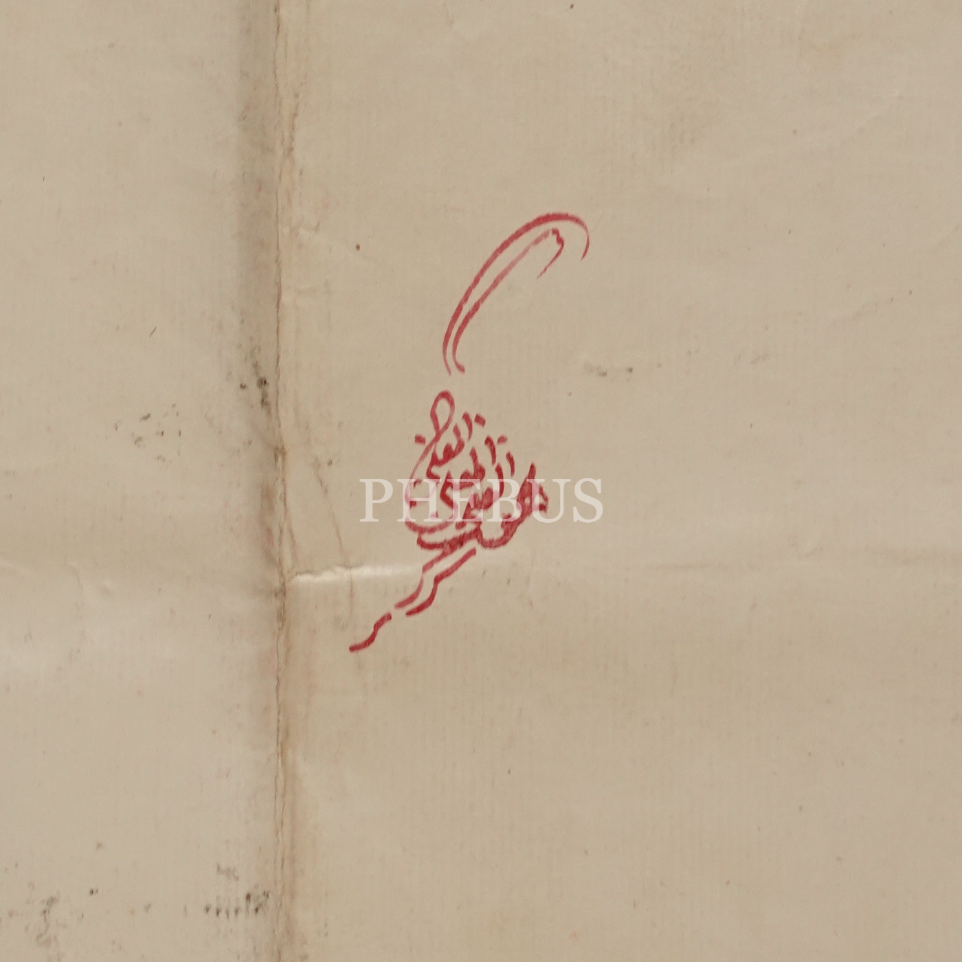 Sultan 2. Mahmud el çekme tuğralı, Haremeyn-i Muhteremeyn (Mekke - Medine Vakıfları) vakfından Gelibolu´da merhum Sarıca Paşa vakfına mutasarrıf atanması konulu berat 54 x 77 cm