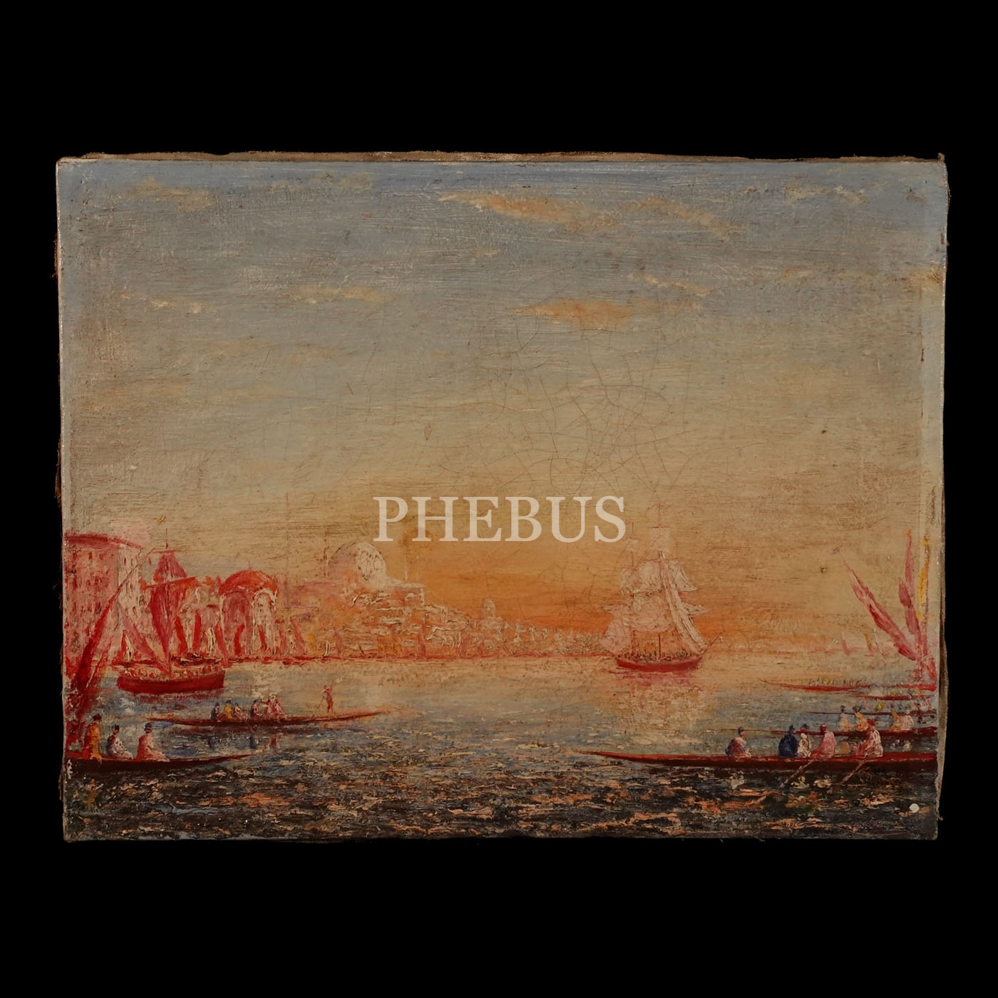 Tuval üzeri yağlı boya İstanbul, Boğaziçi´nde kayıklar ve yelkenli resmi, anonim, 35x27 cm...