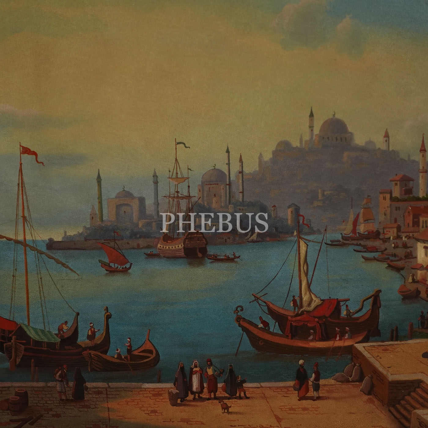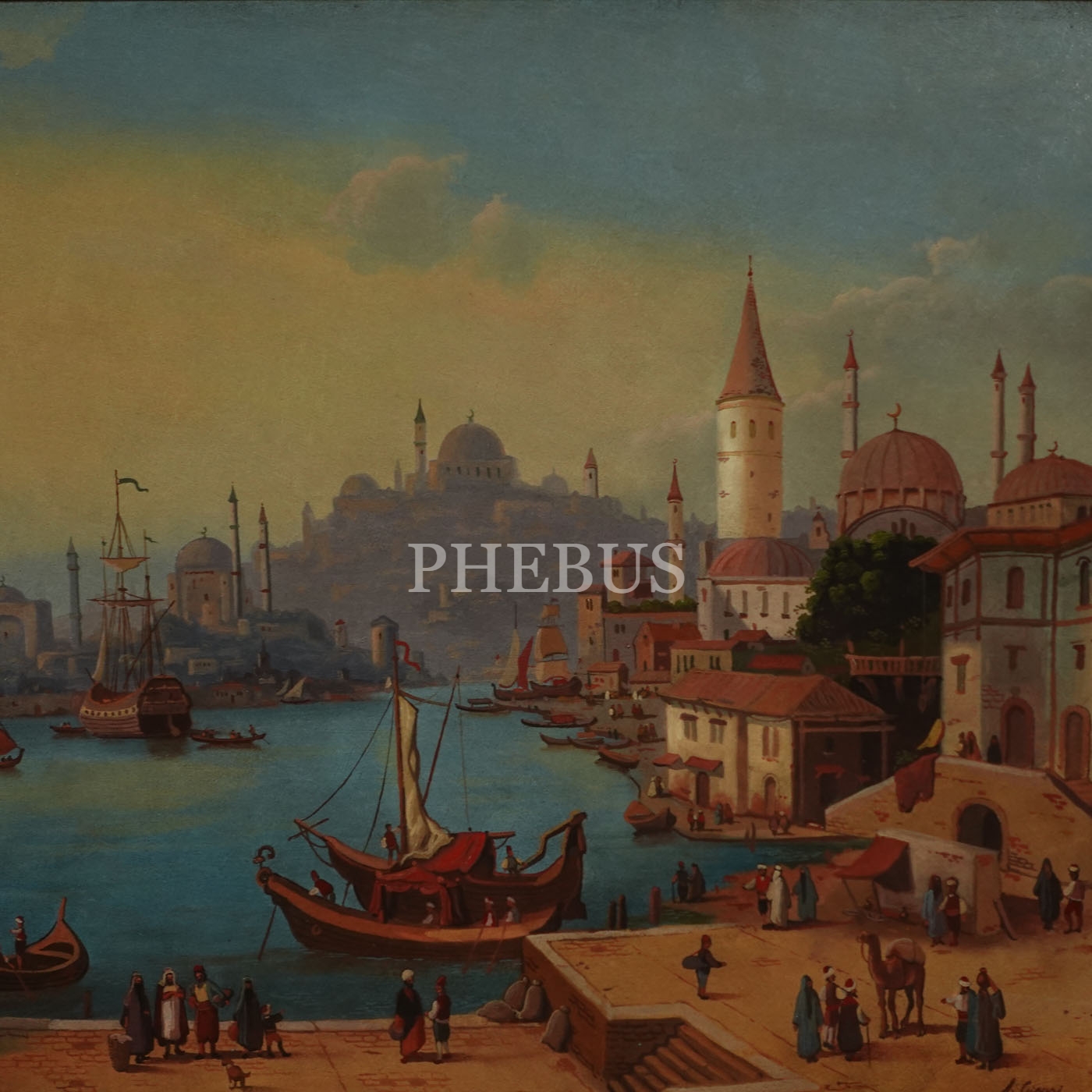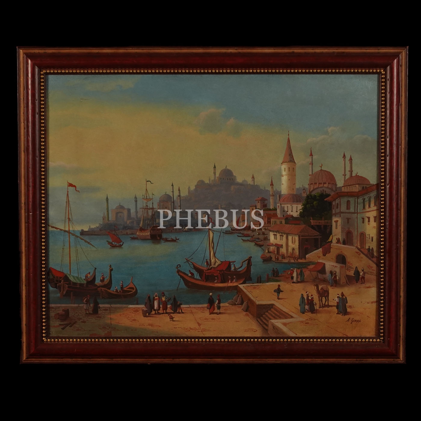 A. Gionni imzalı, tuval üzeri yağlı boya İstanbul tablosu, çerçevesiyle birlikte 52x43 cm...
