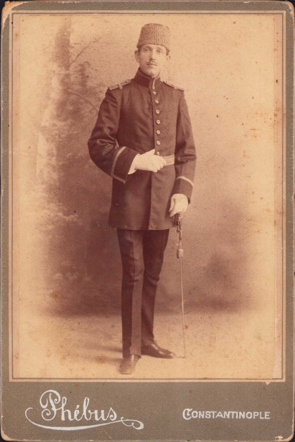 Photo Phebus kabin fotoğrafı, kalpaklı Osmanlı subayı, 11x17 cm
