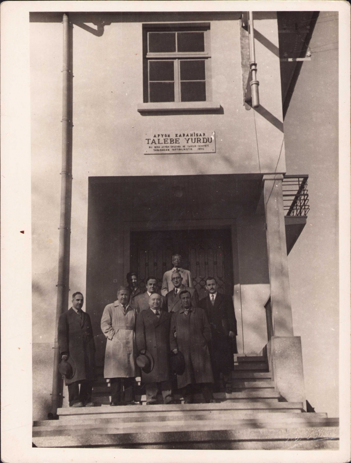 Afyon Karahisar Talebe Yurdu önünde hatıra fotoğrafı, Foto Hikmet Beyoğlu, 18x23 cm