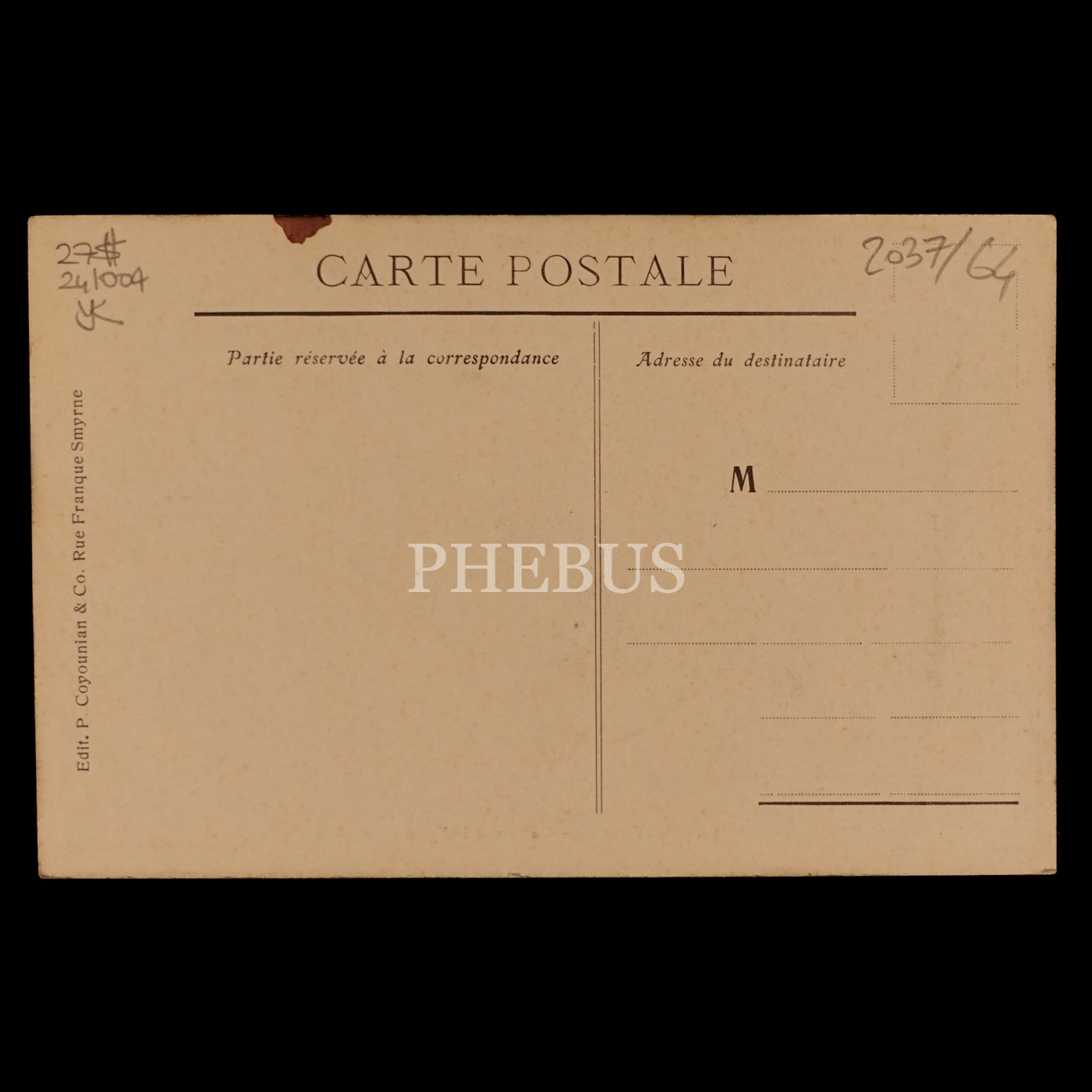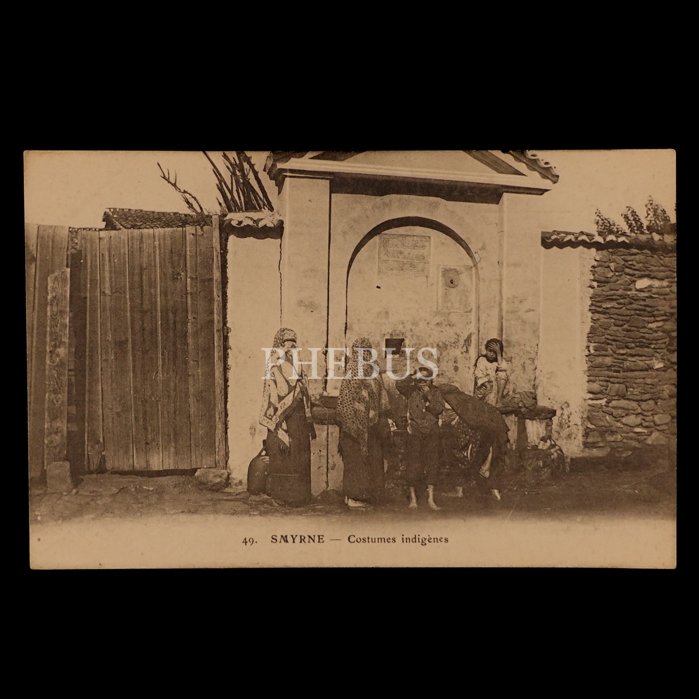 Yöresel kostümlü İzmirliler, "Smyrne - Costumes indigenes", ed. P. Coyounian & Co. Rue Franque - Smyrne", 14x9 cm...