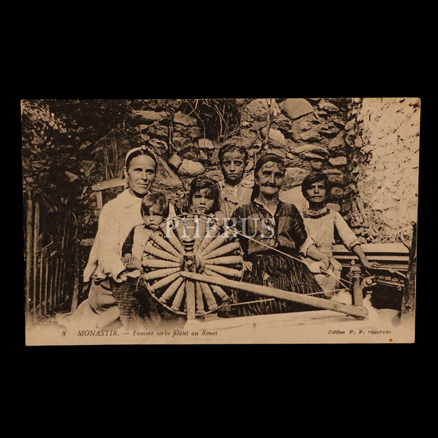 Çıkrık döndüren Manastırlı Sırp kadınlar, "Monastır - Femme serbe filant au Rouet", ed. P. P. reservee, 14x9 cm...