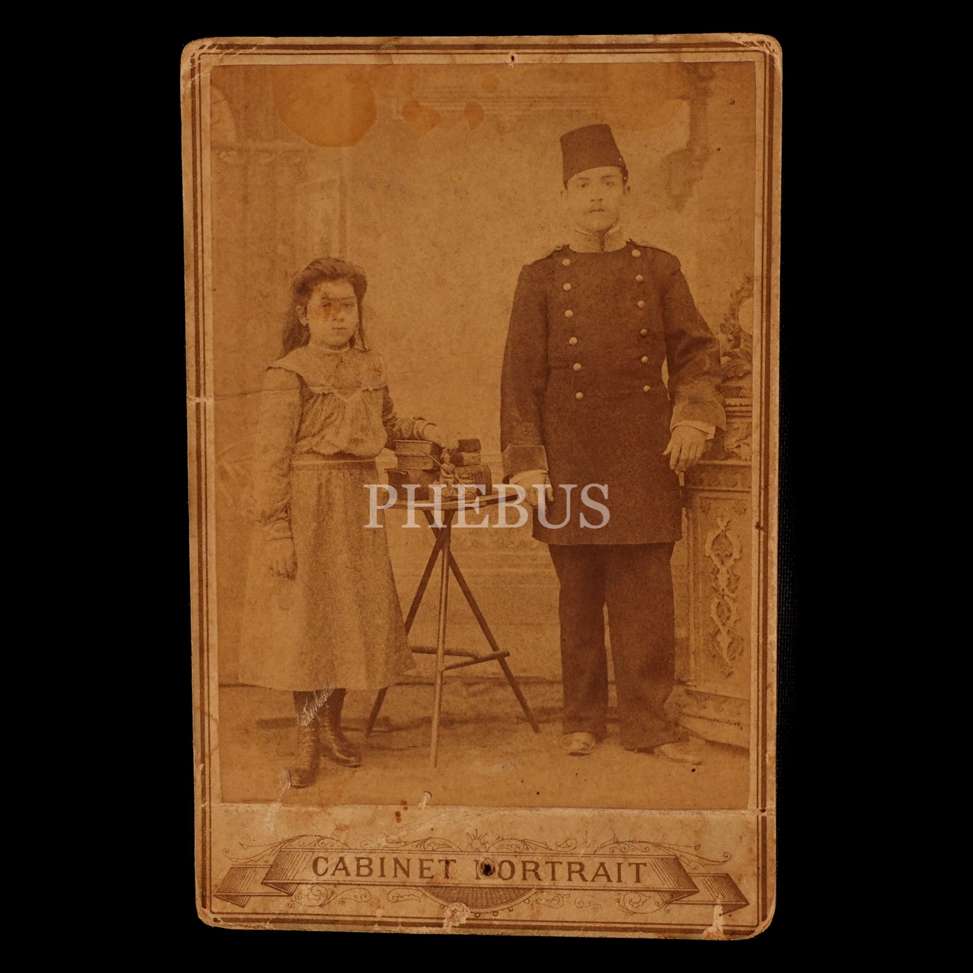 Mekteb-i Tıbbiye-i Şahane öğrencisinin, kız kardeşiyle aldırdığı stüdyo hatıra fotoğrafı, 11x16 cm...