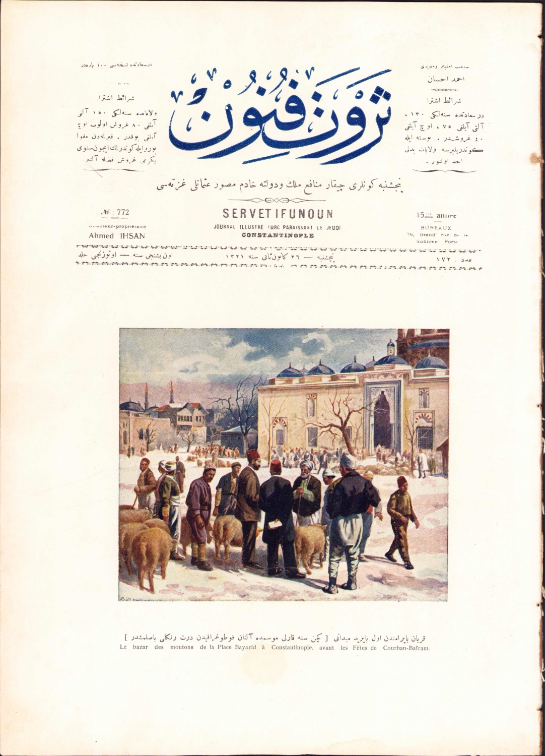 Osmanlıca Serveti Fünun gazetesi, 1321, kapak "Kurban bayramından evvel Beyazıt Meydanı", resimli, 16 sayfa, 23x33 cm