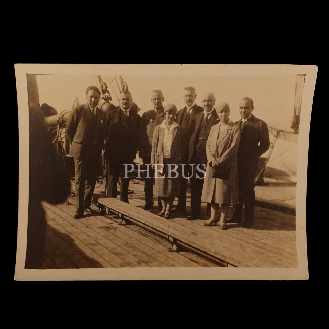 Kılıç Ali ile Ali Çetinkaya´nın görüldüğü, bir gemi güvertesinde alınmış toplu hatıra fotoğrafı, 12x9 cm...