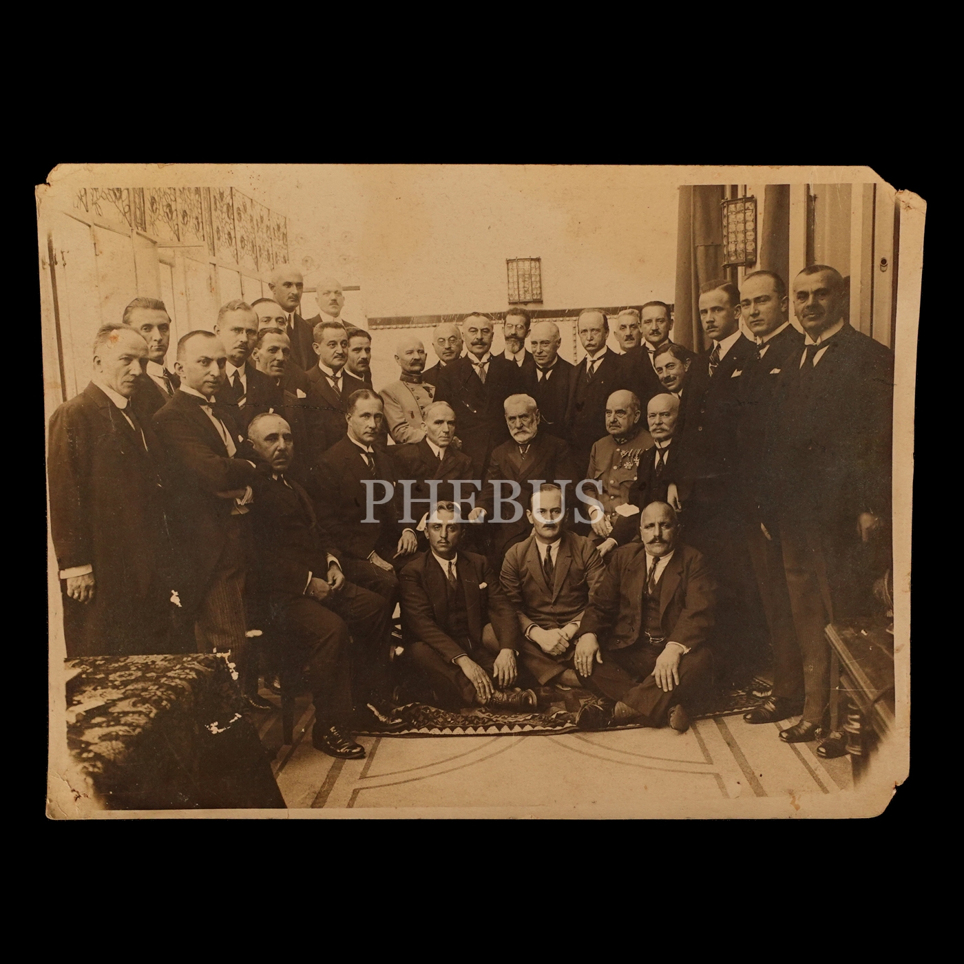 Budapeşte Türkiye Büyük Elçiliği´nde düzenlenen Cumhuriyet Bayramı kutlamalarında, Türkiye´den gelen heyet ve Türk dostu Macarların hatıra fotoğrafı, 24x18 cm...