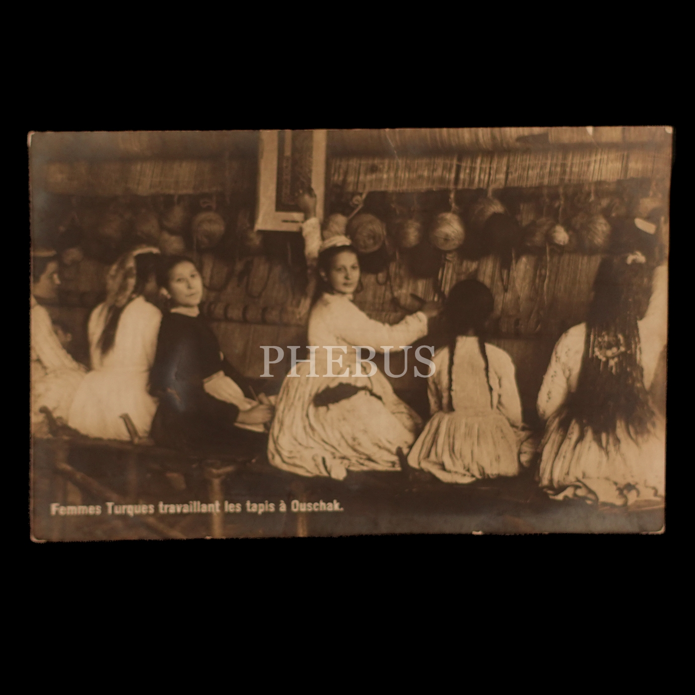 Halı işleyen Uşaklı kadınlar, "Femmes Turques travaillant les tapis a Ouschak", 14x9 cm...