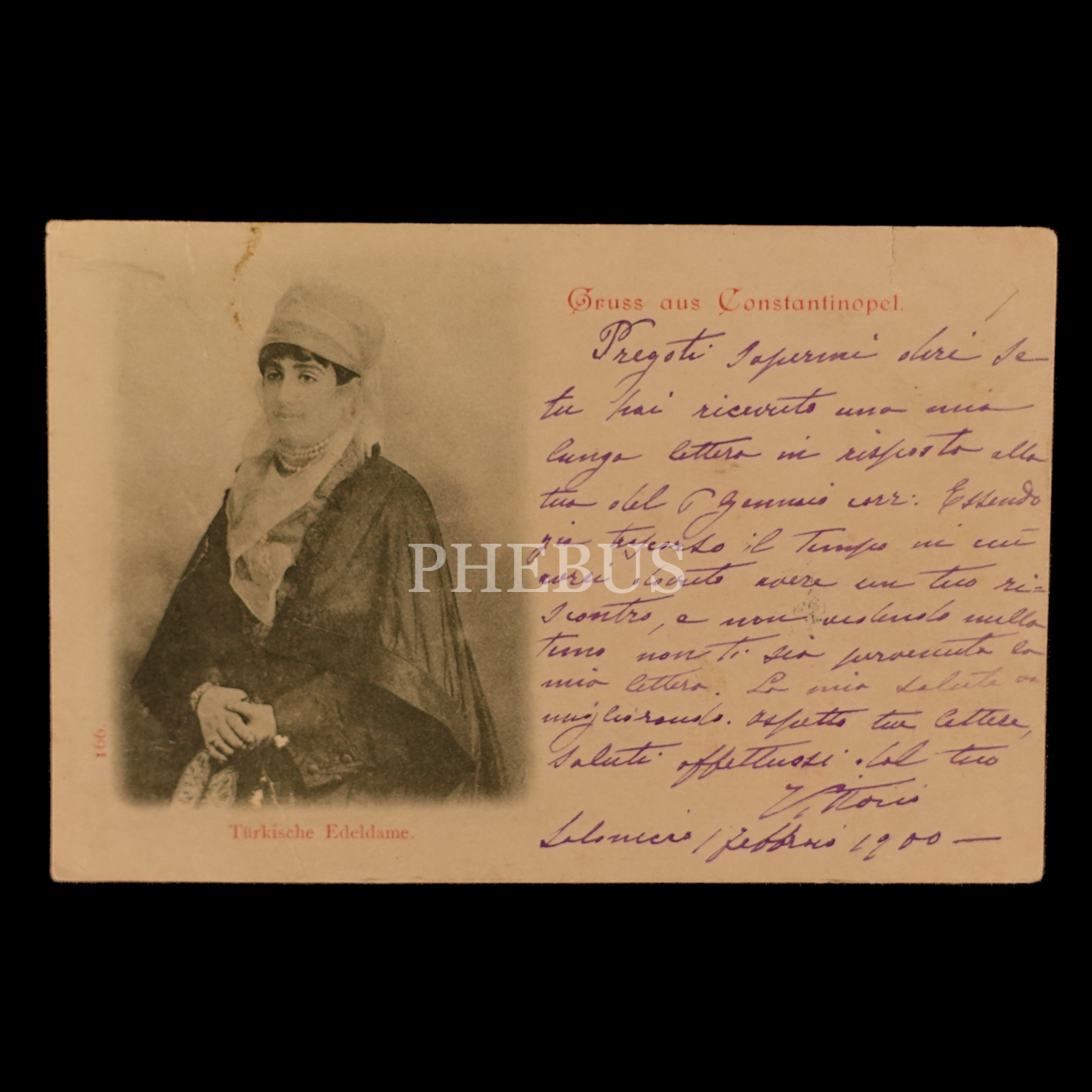 Soylu bir Türk kadını, "Gruss aus Constantinopel - Türkische Edeldame", 14x9 cm...