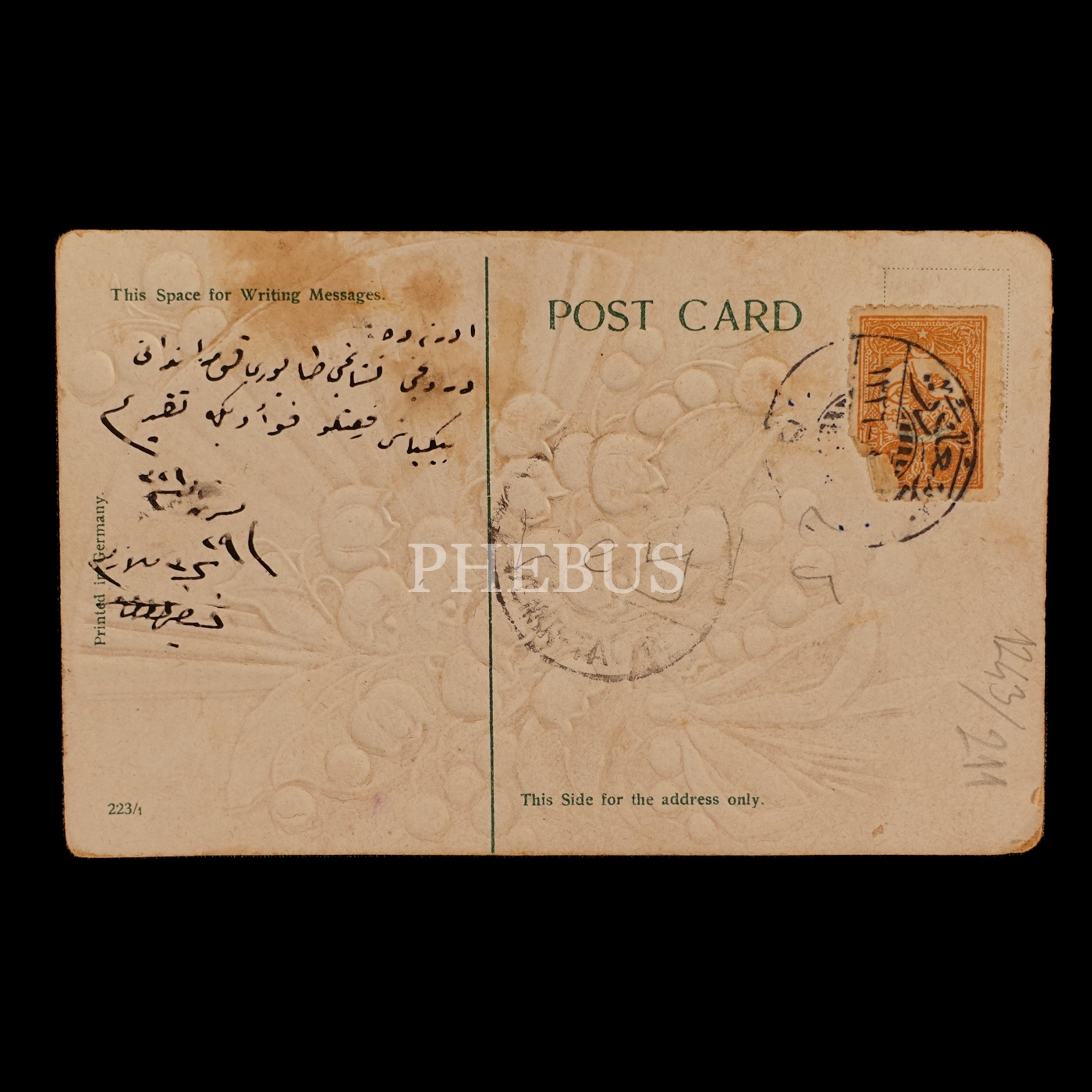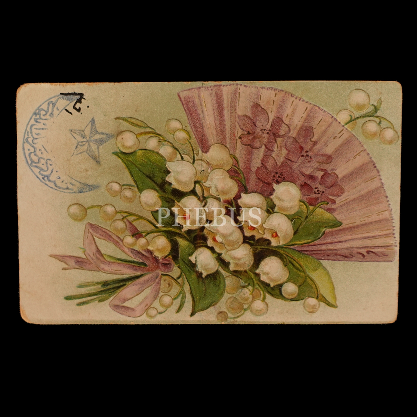 Gofre floral desenlerle süslenmiş, Osmanlıca "Iydınızı tebrik ederim" yazılı bayram tebrik kartı, 14x9 cm...