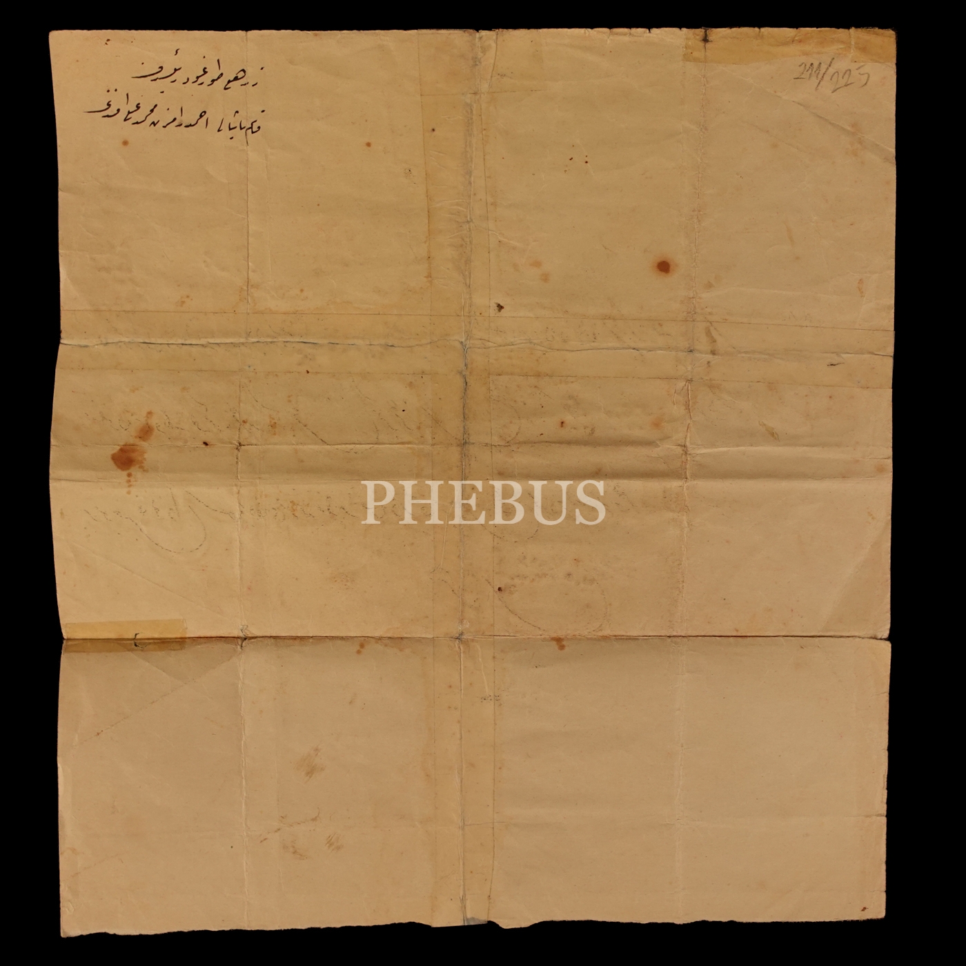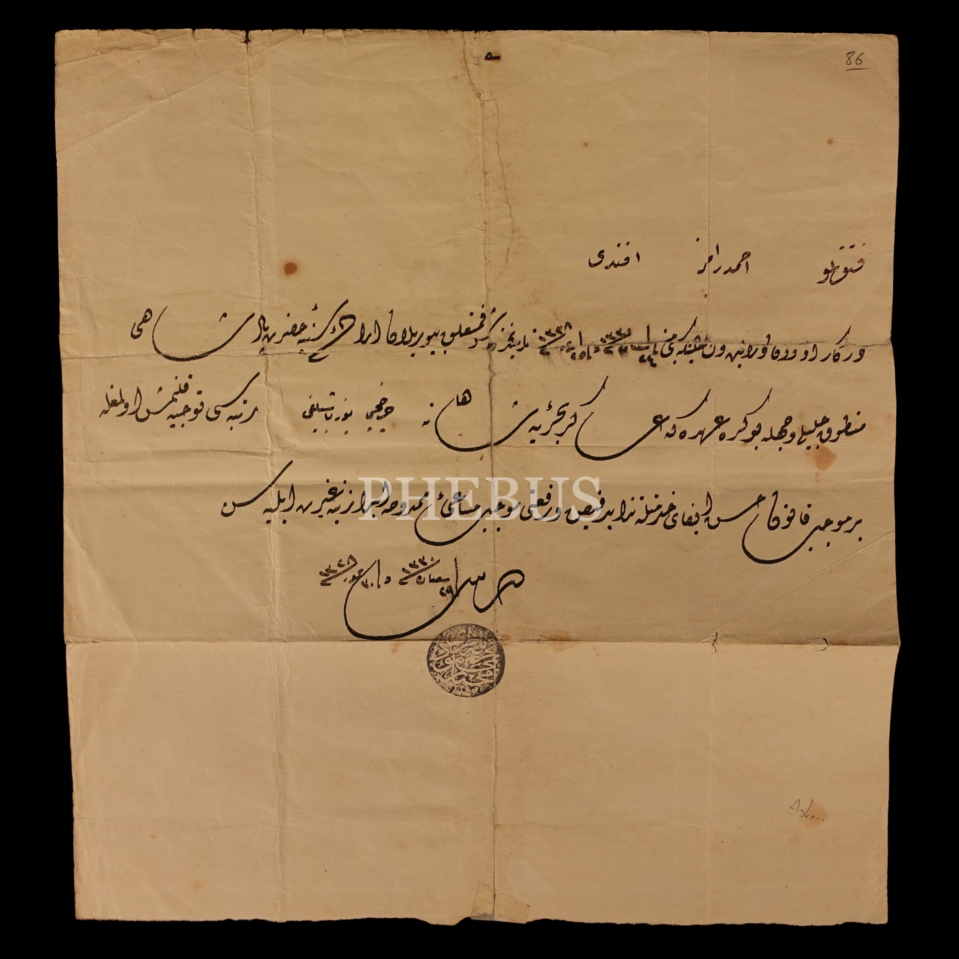 Ahmed Ramiz Efendi´nin Asakir-i Bahriye-i Şahane çarhçı yüzbaşılığı rütbesine tevcih edildiğine dair Bahriye Nazırı Mahmud Muhtar Paşa´nın mührünü taşıyan evrak, 29 Şaban 1330, 25x41 cm...