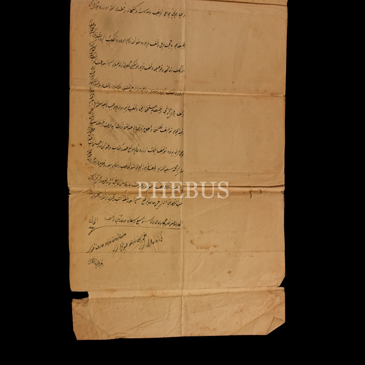Erzincan´ın Cami Mahallesi´nde bulunan cami, medrese ve kütüphanenin vakfının mütevellisi olan Seyid Abdullah Efendi´nin vefatı üzerine en büyük evladı Seyid Abdurrahman´ın mütevelli tayin edildiğine dair evrak, 24x75 cm...