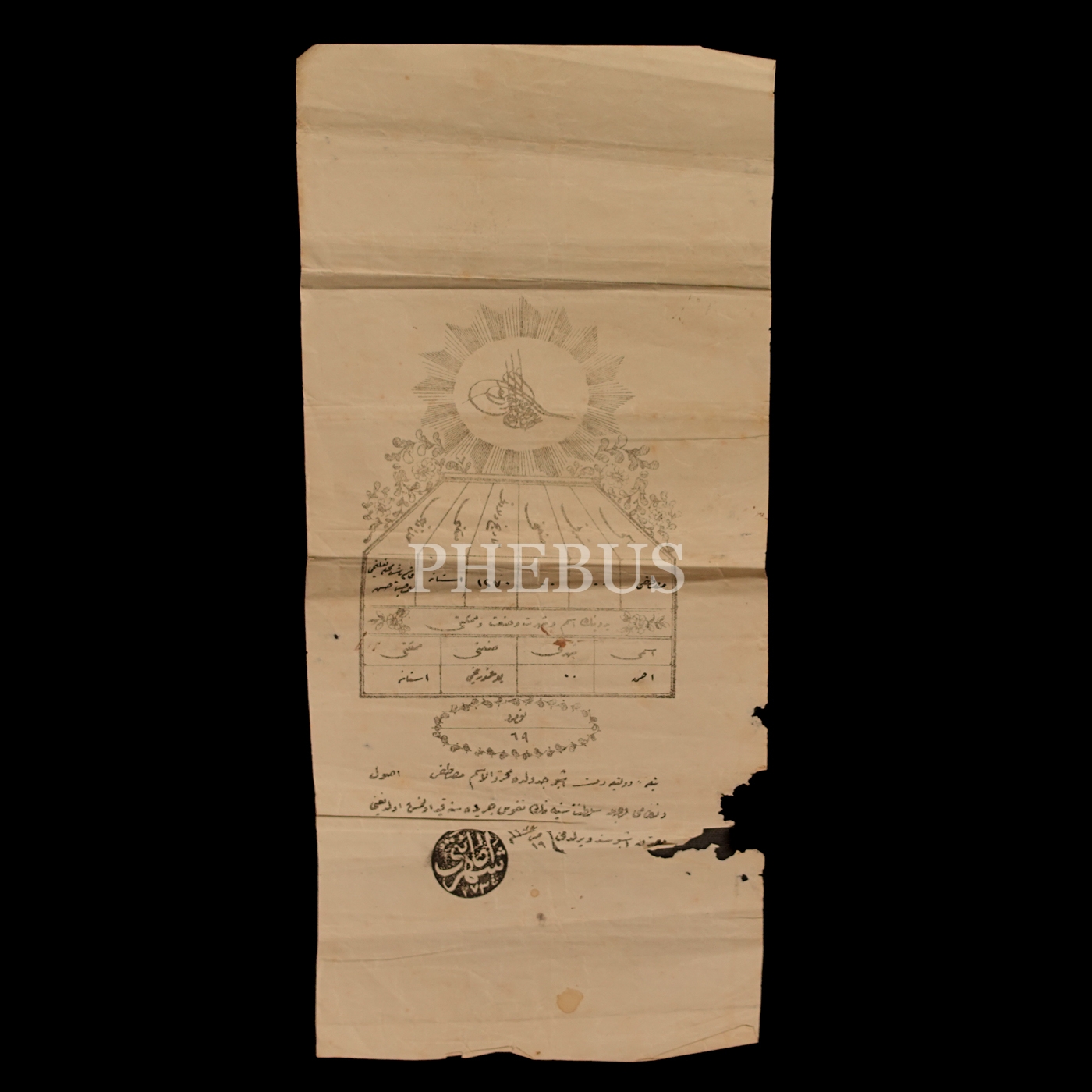 Mustafa Efendi´nin nüfus defterlerine kayıt edildiğine dair Sultan Abdülmecid tuğralı evrak, 15x34 cm...