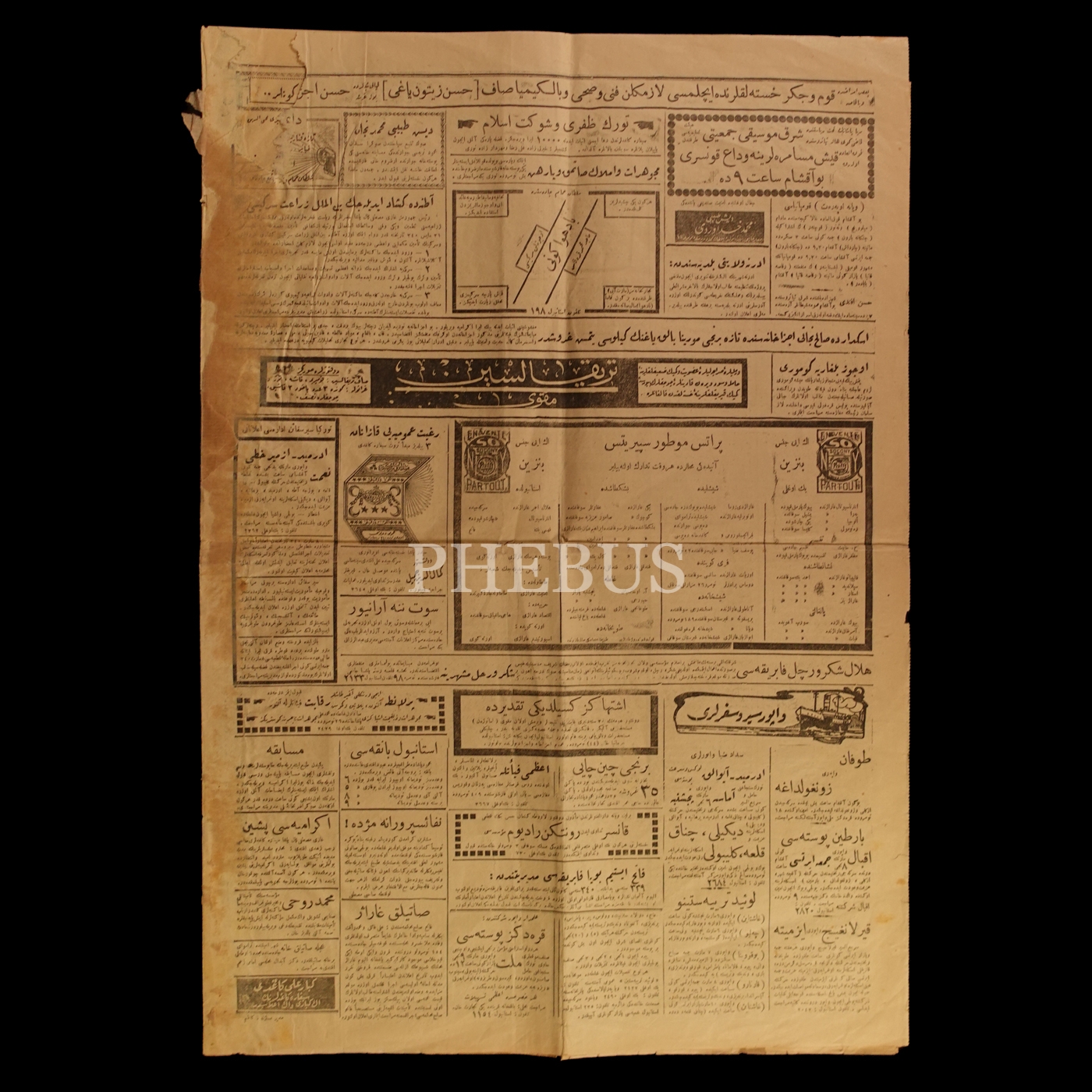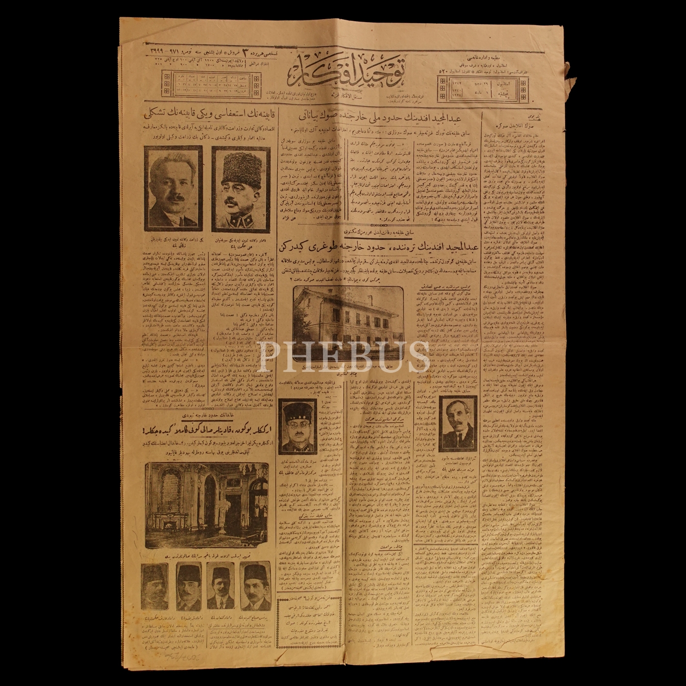 TEVHİD-İ EFKAR gazetesinin 29 Recep 1342 tarihli nüshası, 43x62 cm...