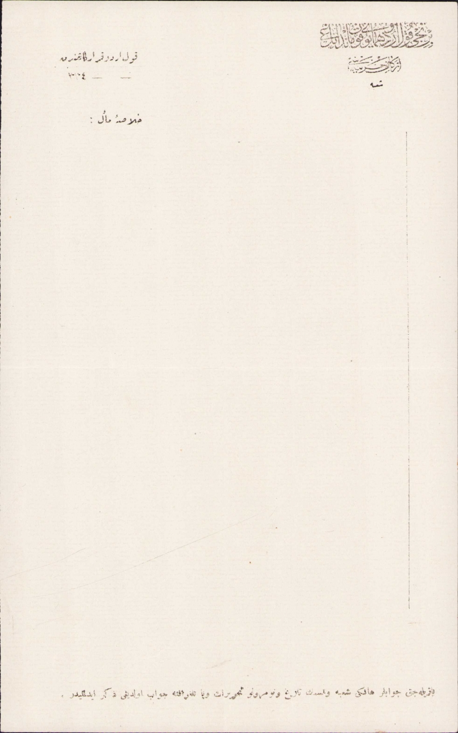 Osmanlıca Birinci Kolordu Hümayun Kumandanlığı antetli boş evrak, 16x26 cm