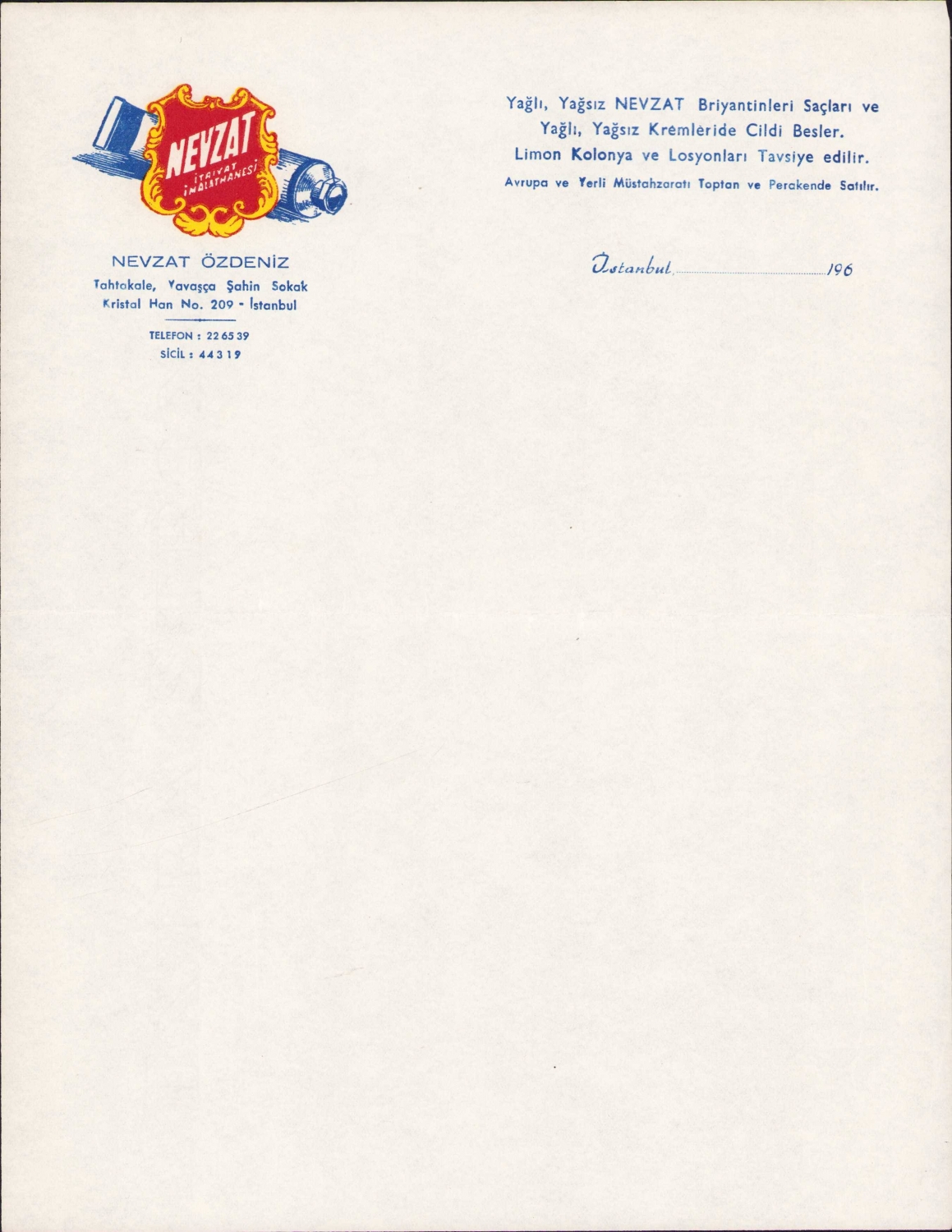 Nevzat Itriyat İmalathanesi antetli boş evrak, 21x28 cm