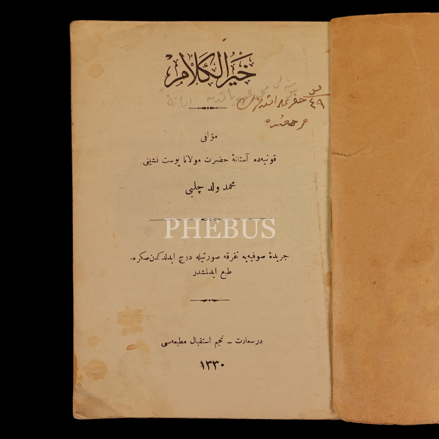 HAYRÜ´L-KELAM, Mevlânâ Celâleddin-i Rumî, (Çeviren: Veled Çelebi [İzbudak]), 1330, Necm-i İstikbâl Matbaası, 75 sayfa, 12x18 cm...