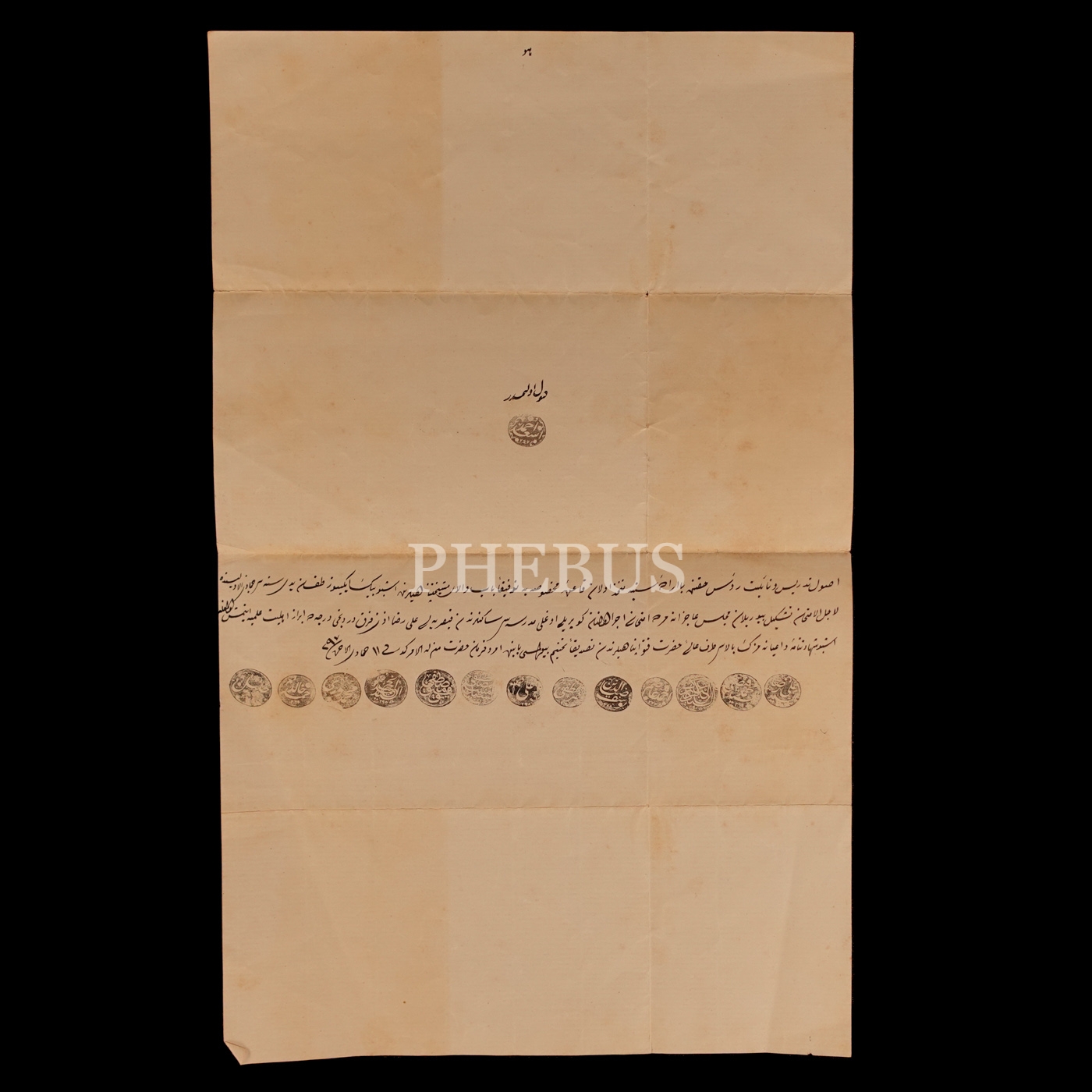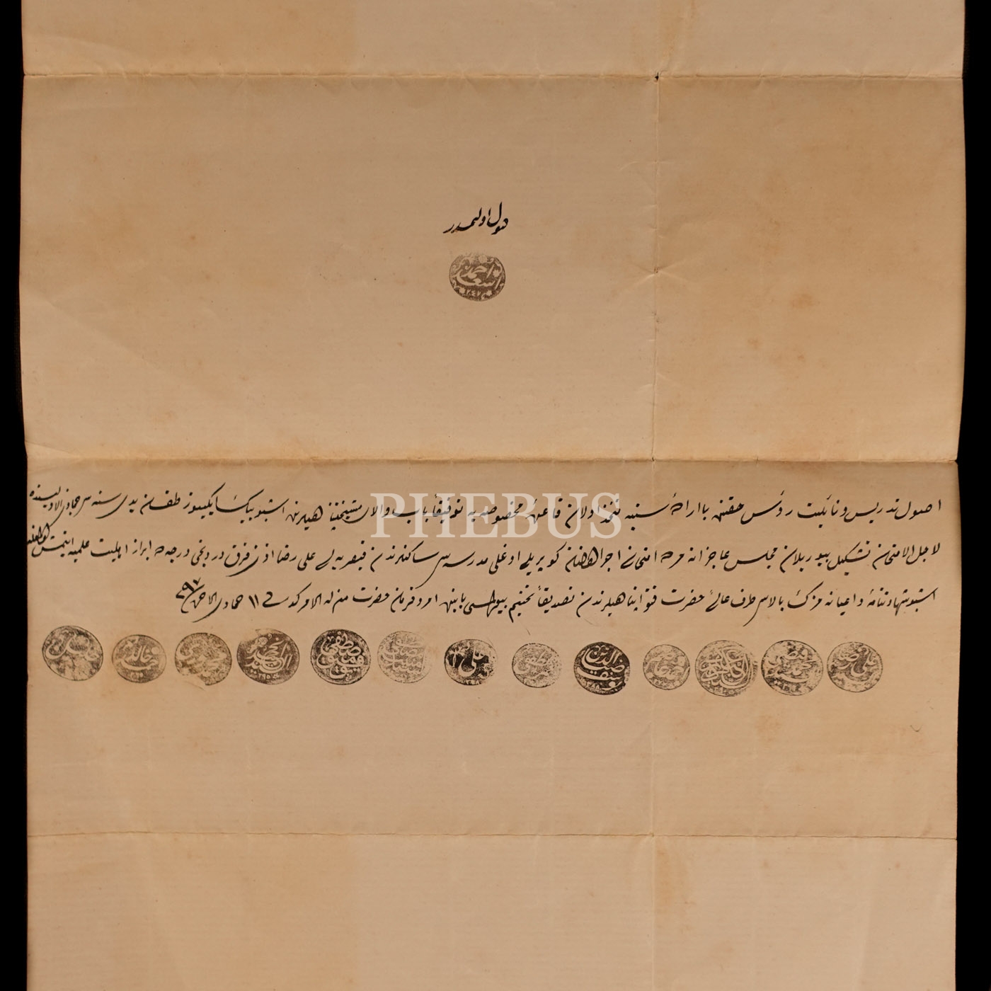 Kayserili Ali Rıza Efendi´nin Köprülüoğlu Medresesi´nden mezun olduğuna dair Sadrazam Ahmed Esad Paşa´nın ve medrese hocalarının mührünü taşıyan diploması, 24x38 cm...
