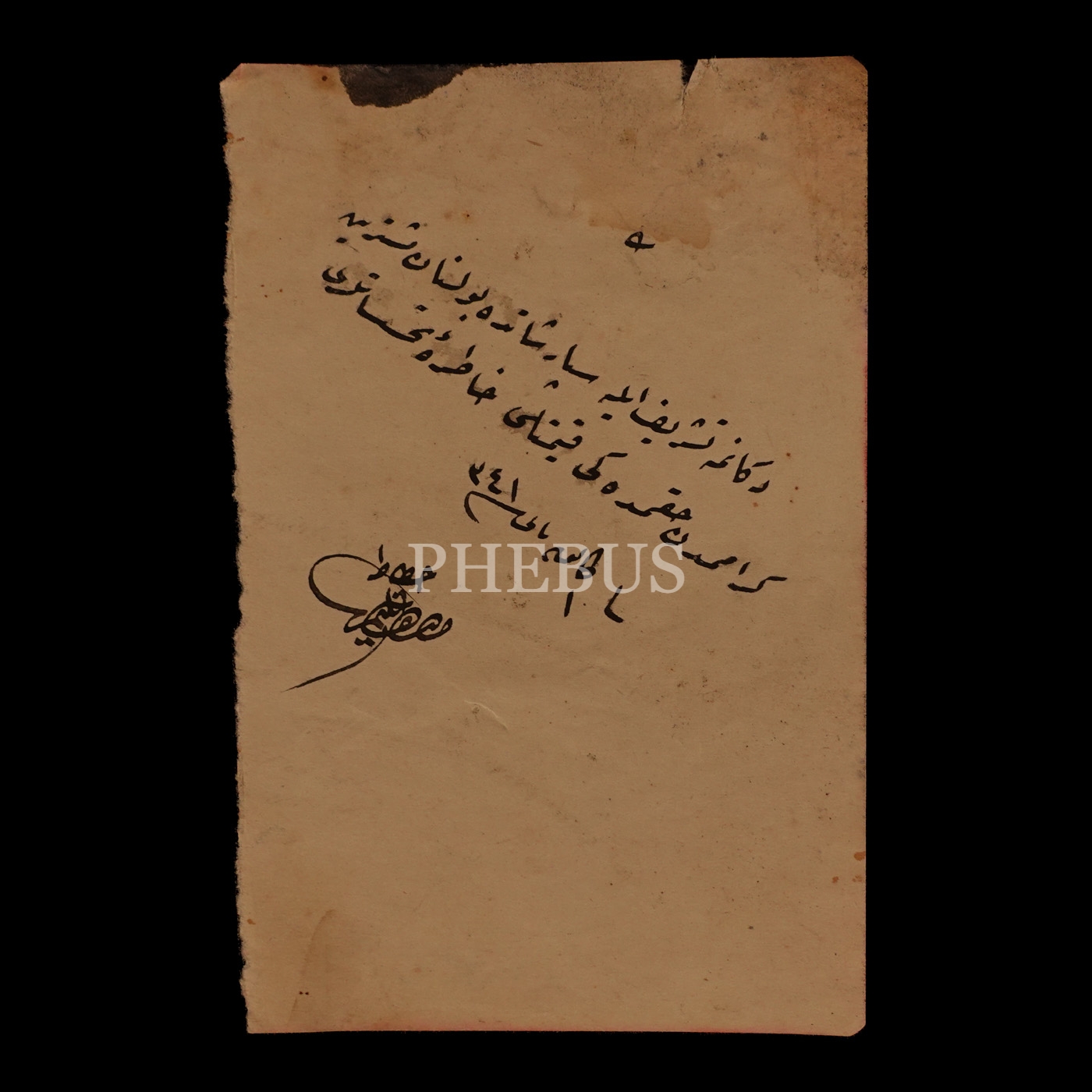 Yazı, "Dükkanıma teşrif ile siparişâtta bulunan teşrin-i kiramdan hakkımdaki kıymetli hatıra-i tahassüsatları" şeklindedir.
