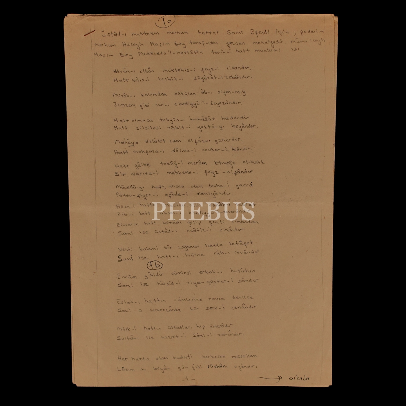 Halim Özyazıcı terekesinden, Hattat Sami Efendi için yazılan mersiye, 5 sayfa, 15x20 cm...