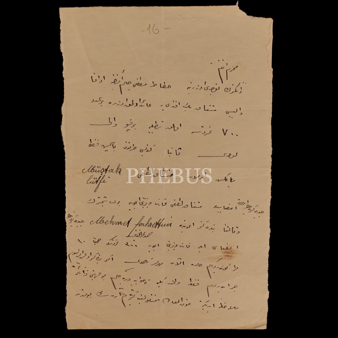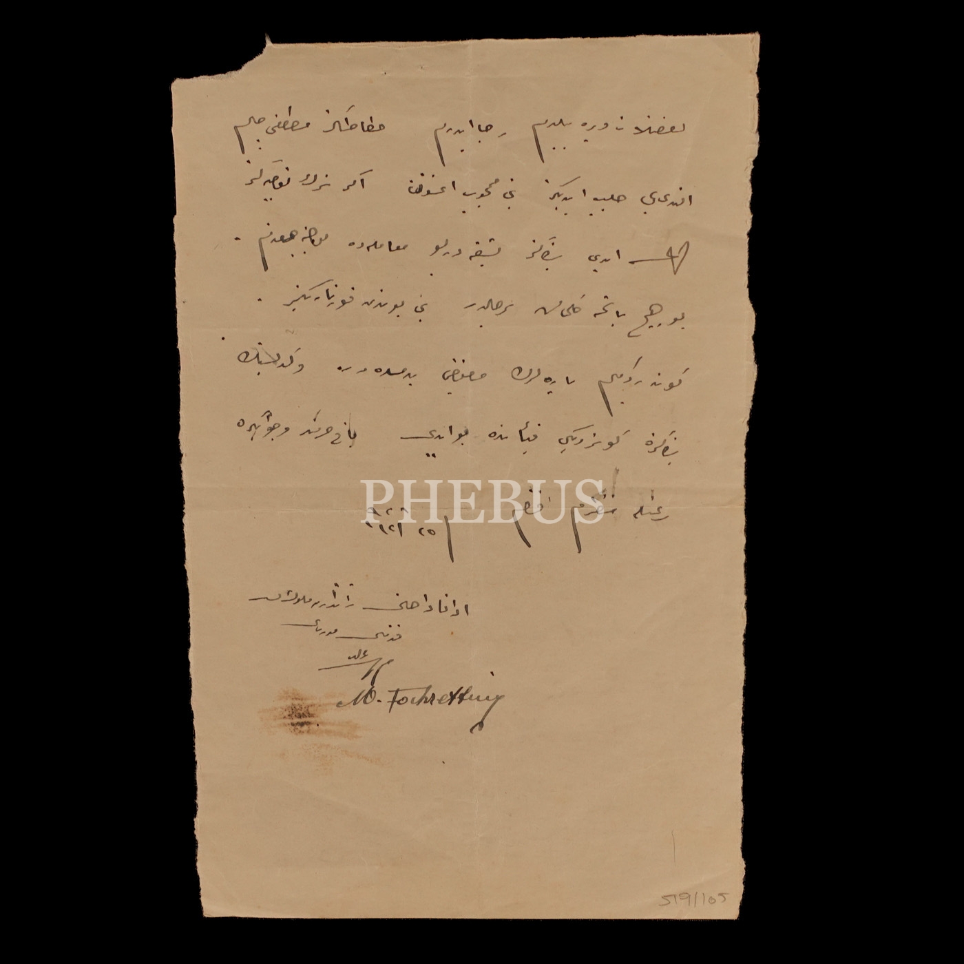 Halim Özyazıcı´ya sipariş edilen, Adana Valisi Müştak Efendi´nin kapı levhası yazısı hakkında kaleme alınmış mektup, 14x20 cm...