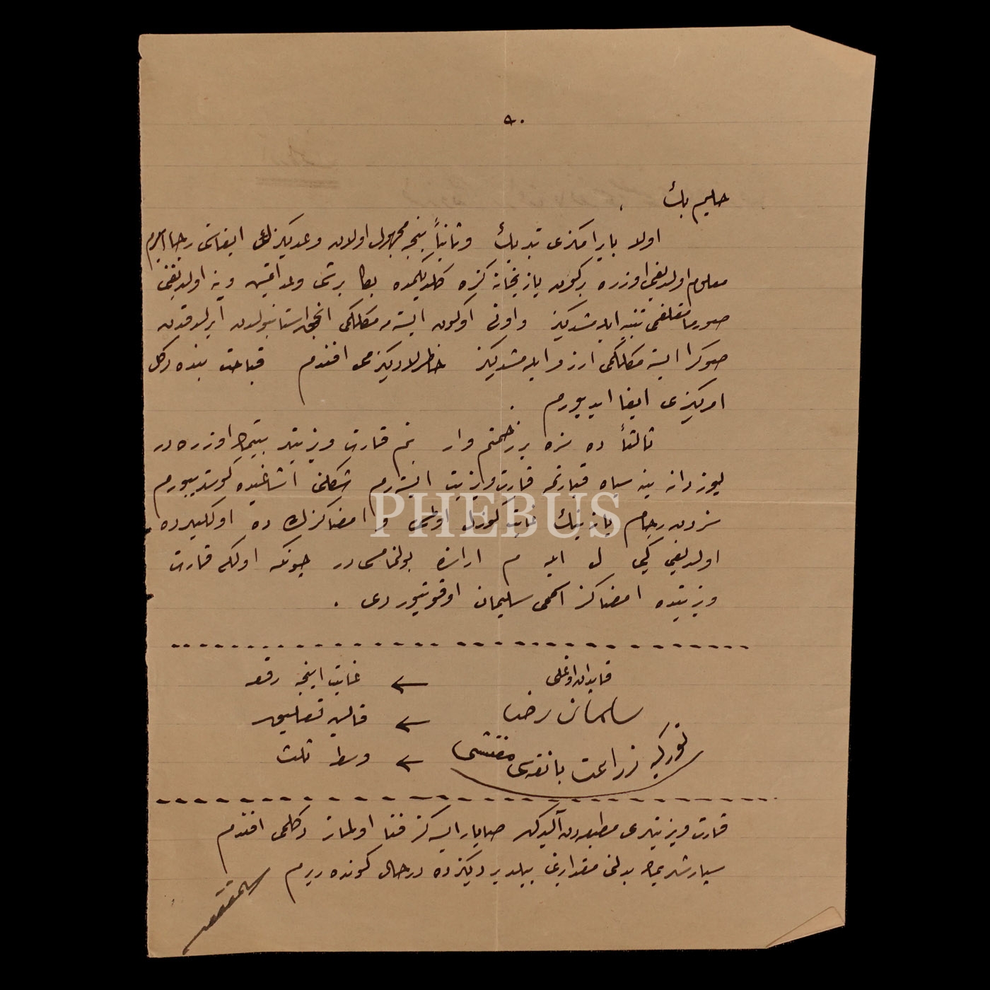 Ziraat Bankası Müfettişi Selman Rıza´nın, Halim Özyazıcı´ya sipariş ettiği kartviziti hakkında kaleme aldığı mektubu, 15x20 cm...