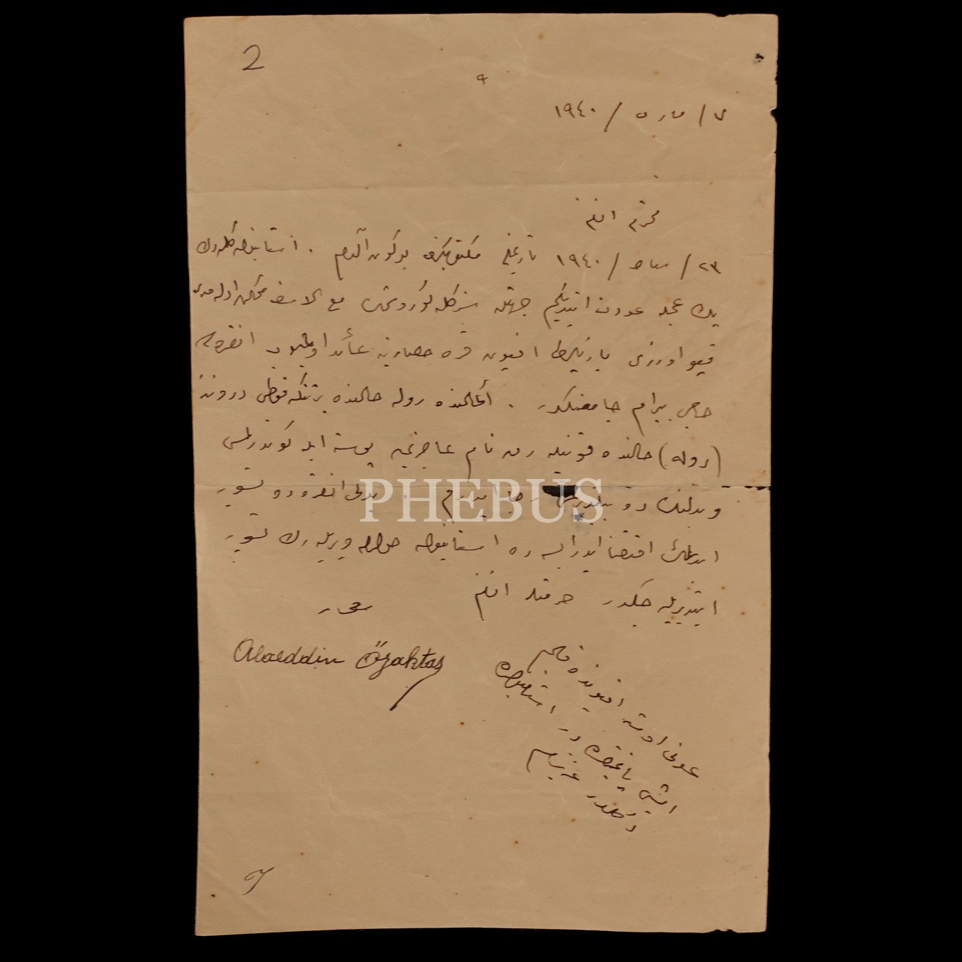 Halim Özyazıcı terekesinden, Mimar Alaeddin Özaktaş´ın ıslak imzalı mektubu, 14x22 cm...