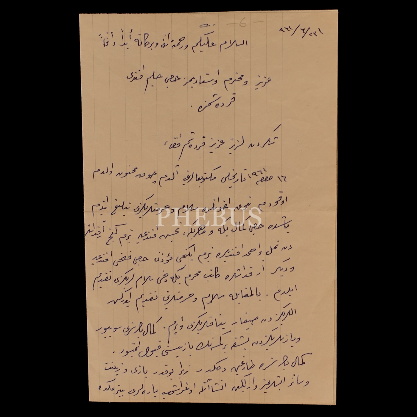 Halim Özyazıcı´ya öğrencisi Mahir Fazıl Girgin Bartınî´nin mektubu, 23 Haziran 1961, 15x23 cm...