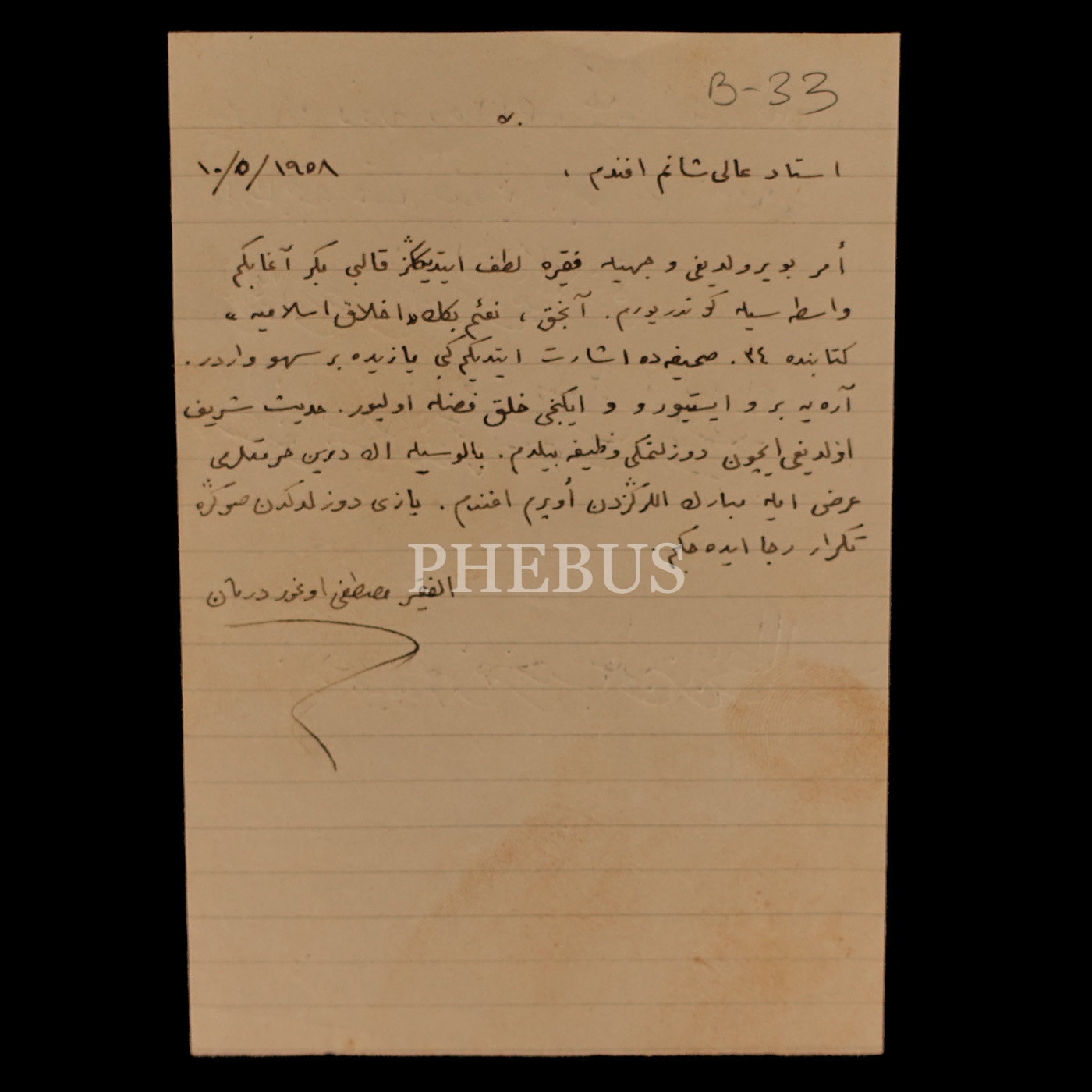 Mustafa Uğur Derman´ın Halim Özyazıcı´ya hitaben kaleme aldığı mektubu, 11x15 cm...
