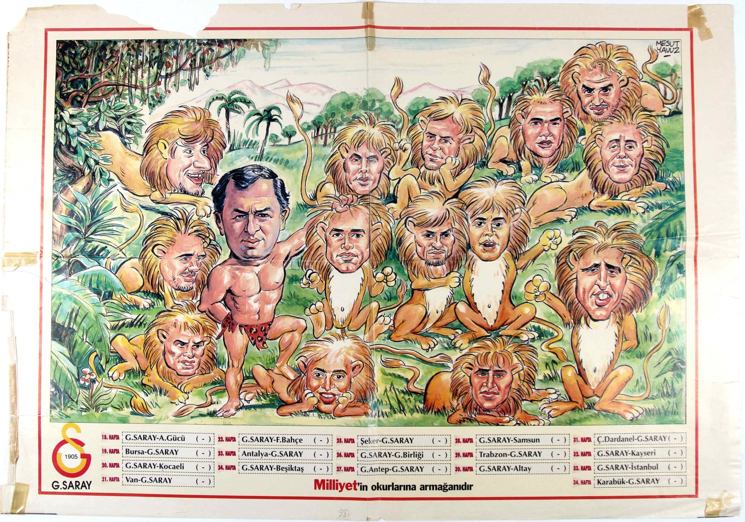 Mesut Yavuz çizimi karikatür Galatasaray poster, haliyle, 60x43 cm