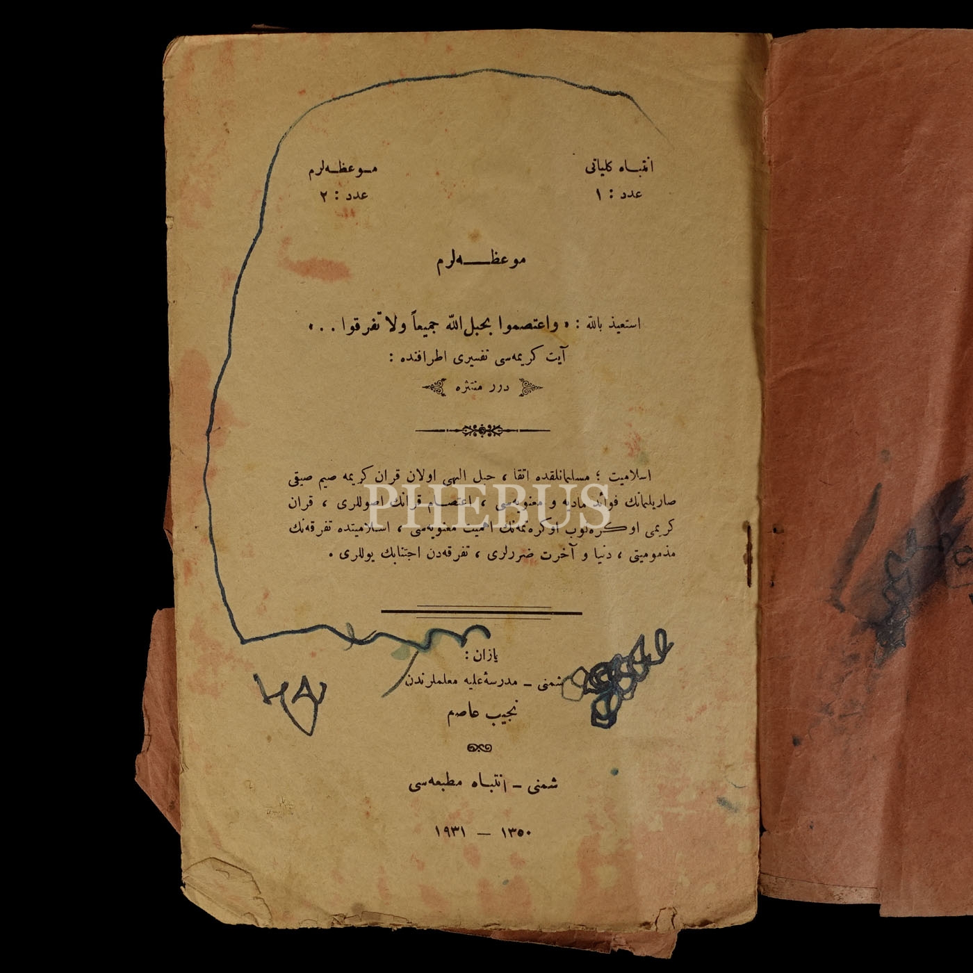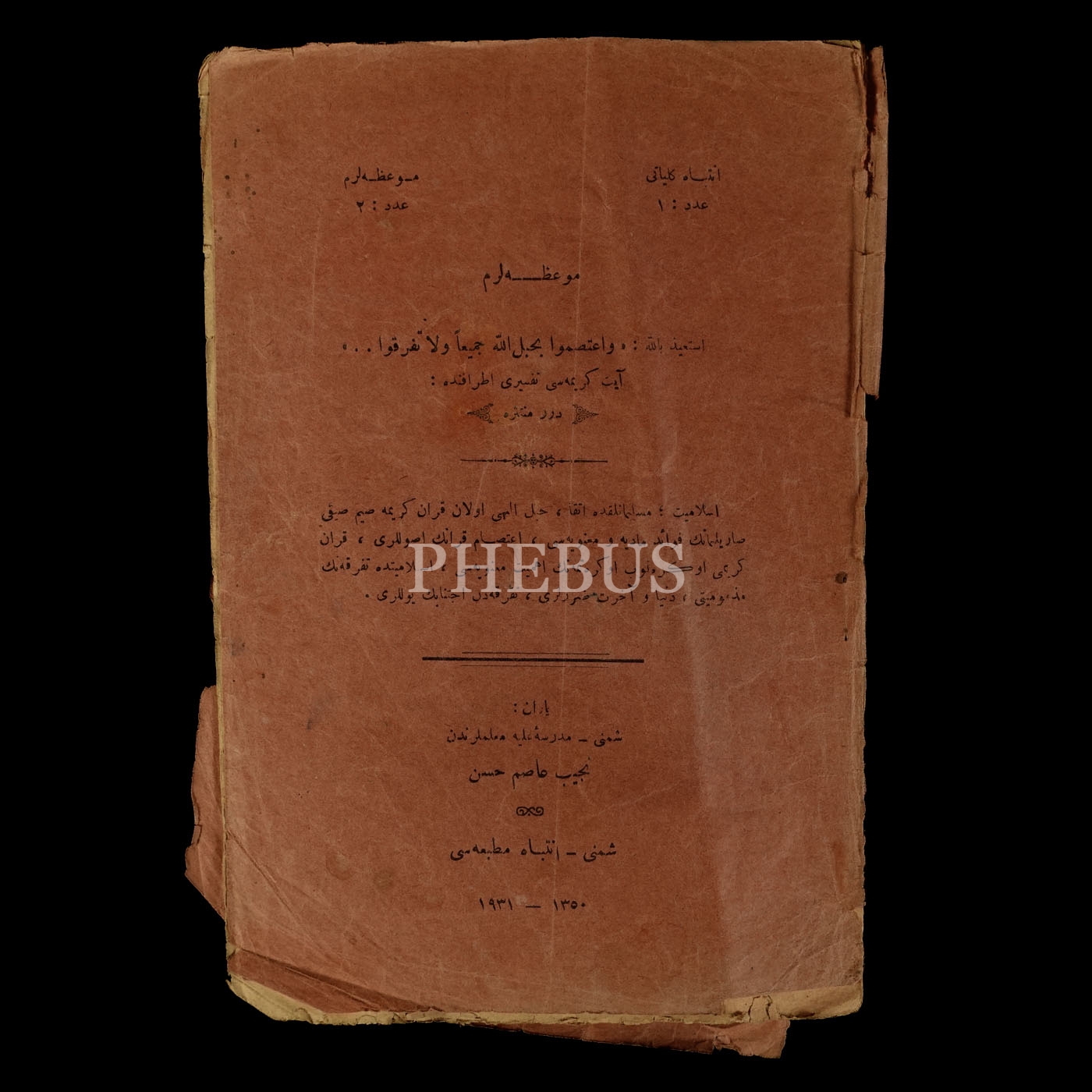 MEV´IZALARIM, Necip Asım Hasan, 1931, İntibah Matbaası (Şumnu, Bulgaristan), 14 sayfa, 16x24 cm...