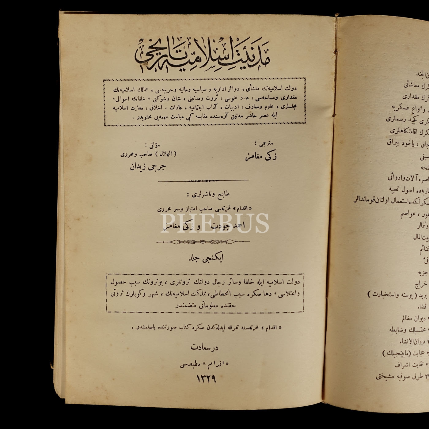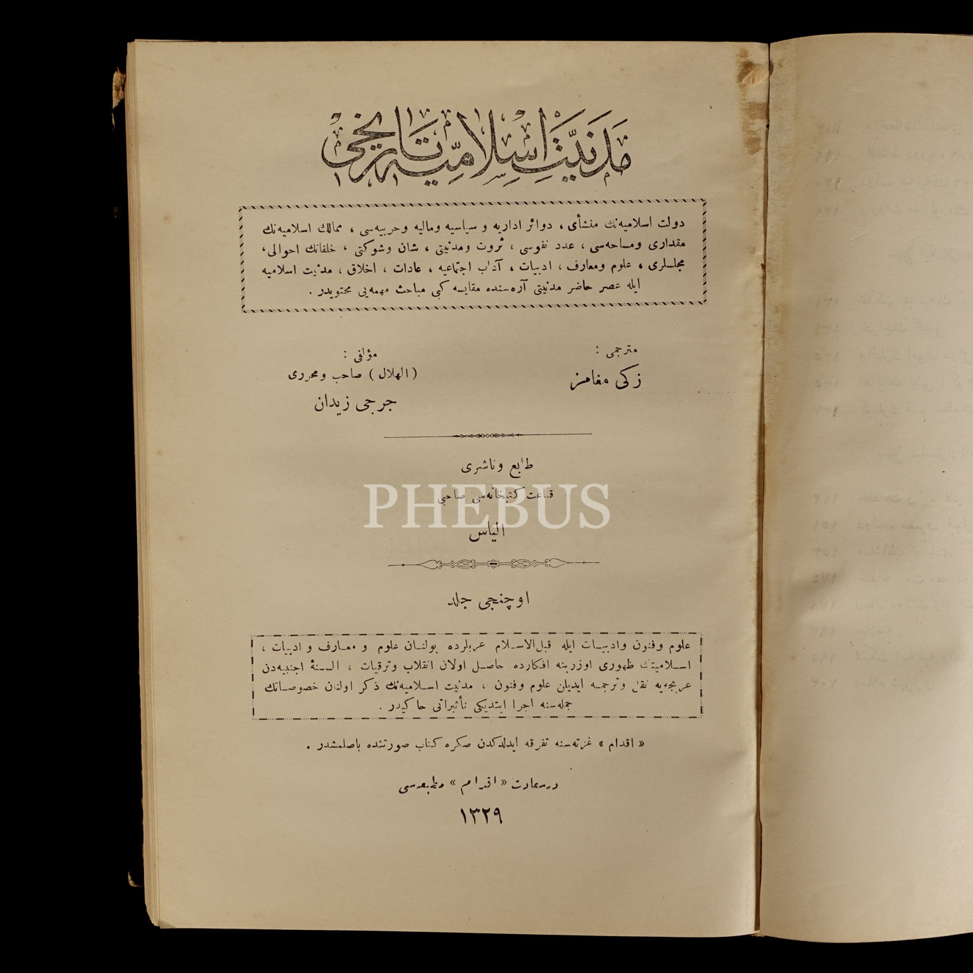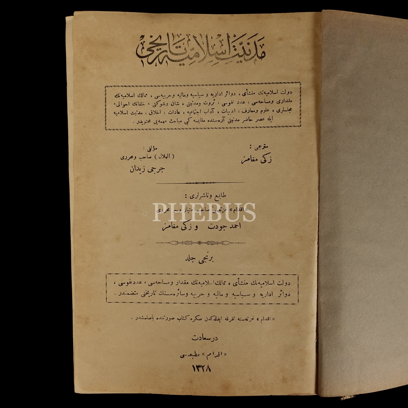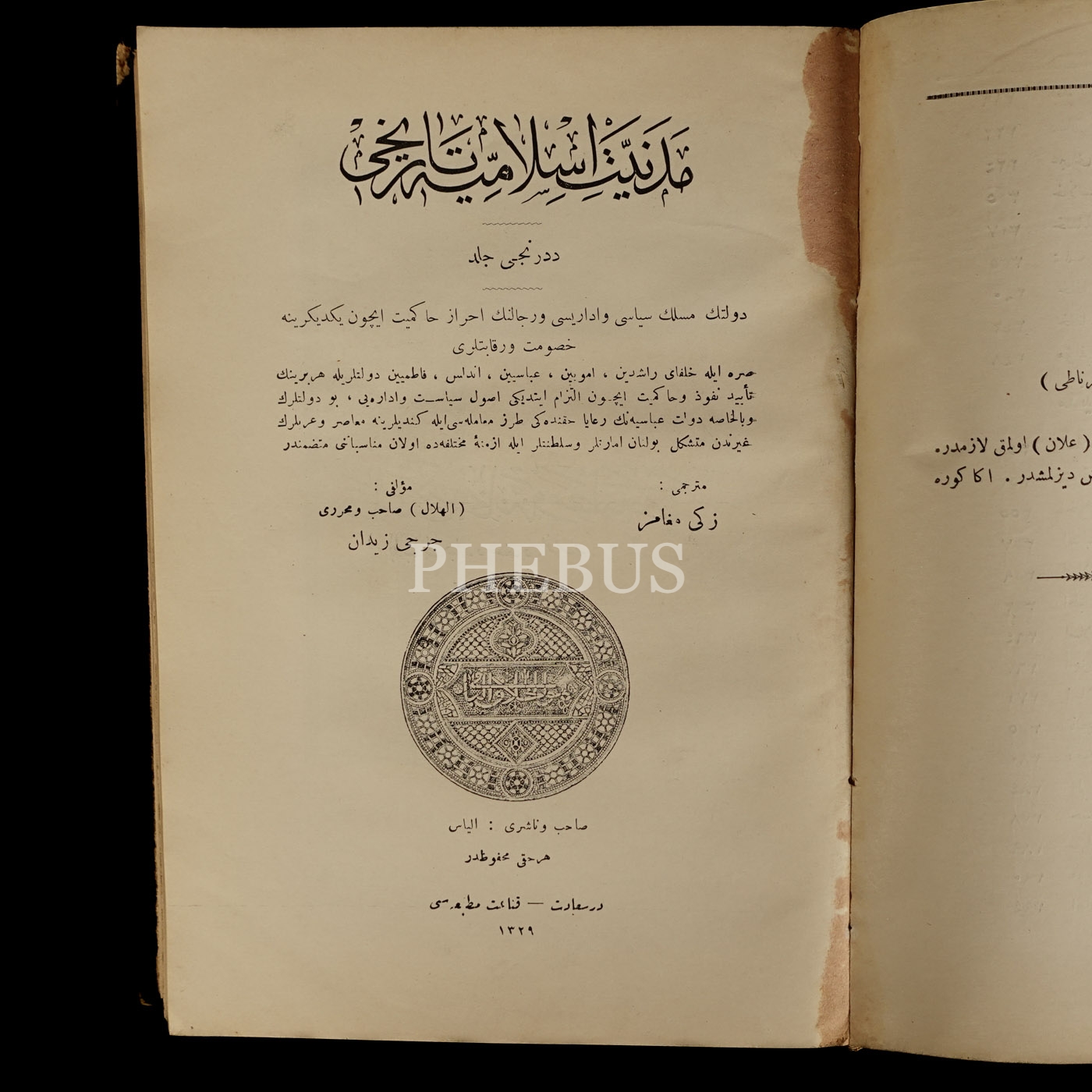 MEDENİYET-İ İSLAMİYE TARİHİ (5 Cilt takım), Corci Zeyda, (mütercimi: Zeki Magamez), 1328, İkdam Matbaası, 17x24 cm...