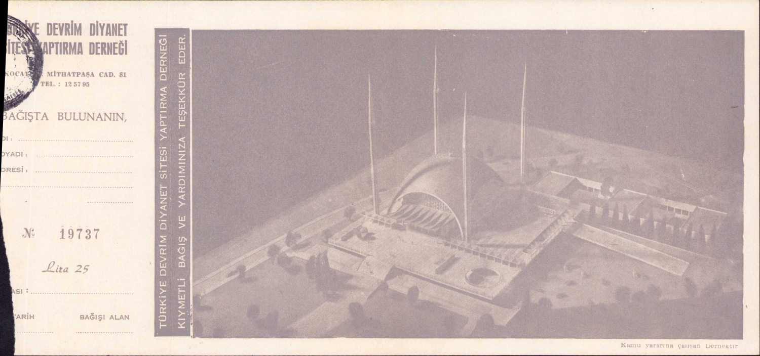 Türkiye Devrim Diyanet Sitesi Yaptırma Derneği antetli bağış makbuzu, bir tarafı yok, 30x14 cm