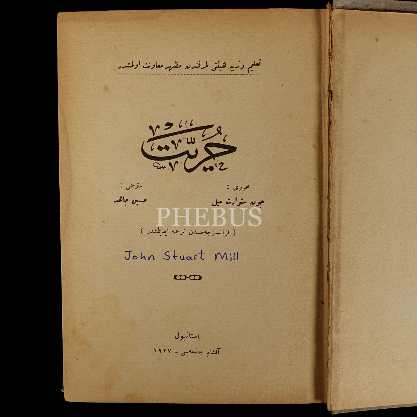 HÜRRİYET, John Stuart Mill, (Çeviren: Hüseyin Cahid), 1927, Akşam Matbaası, 349 sayfa, 14x20 cm...