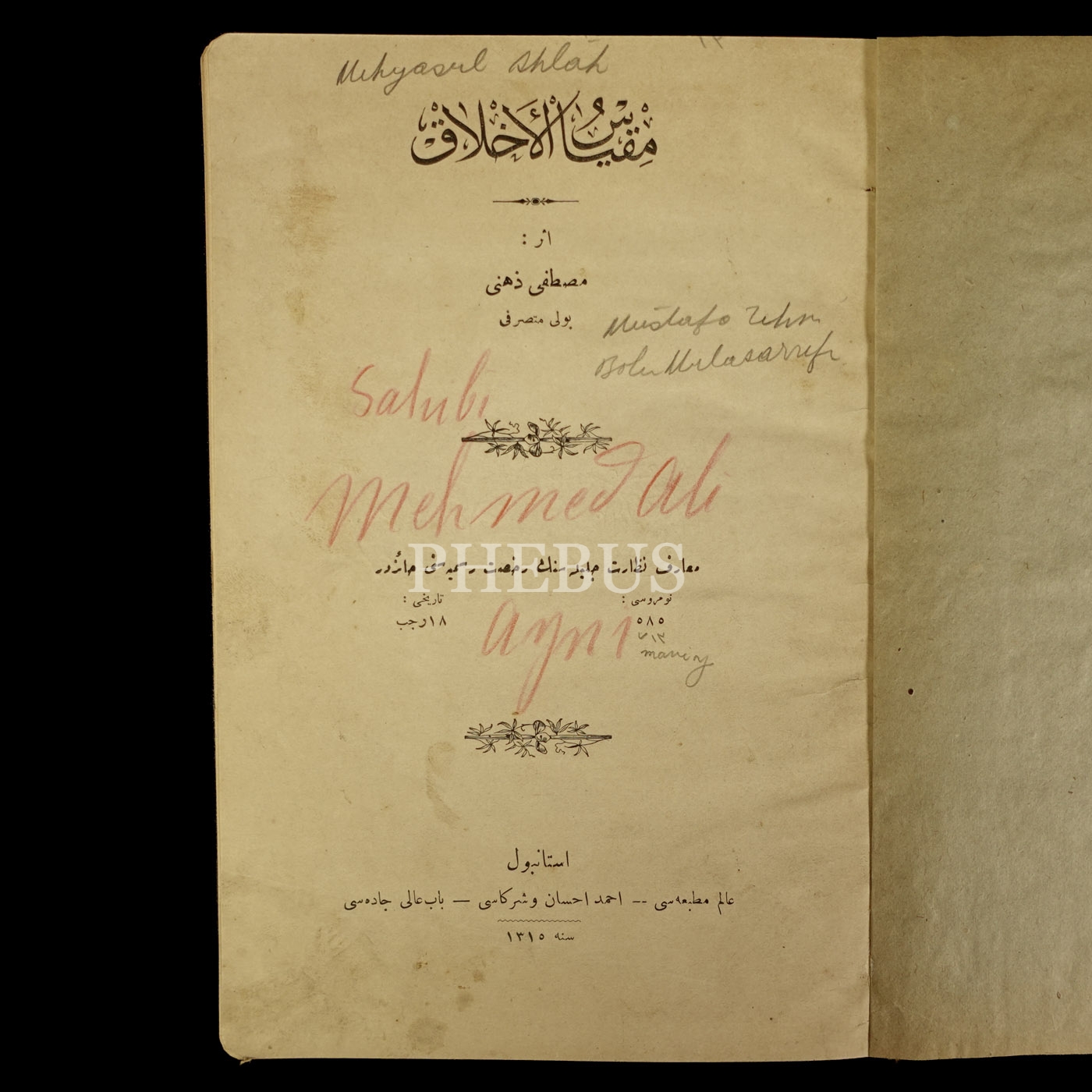 MİKYASÜ´L-AHLAK, Mutafa Zihni, 1315, Alem Matbaası,110 sayfa, 15x22 cm...