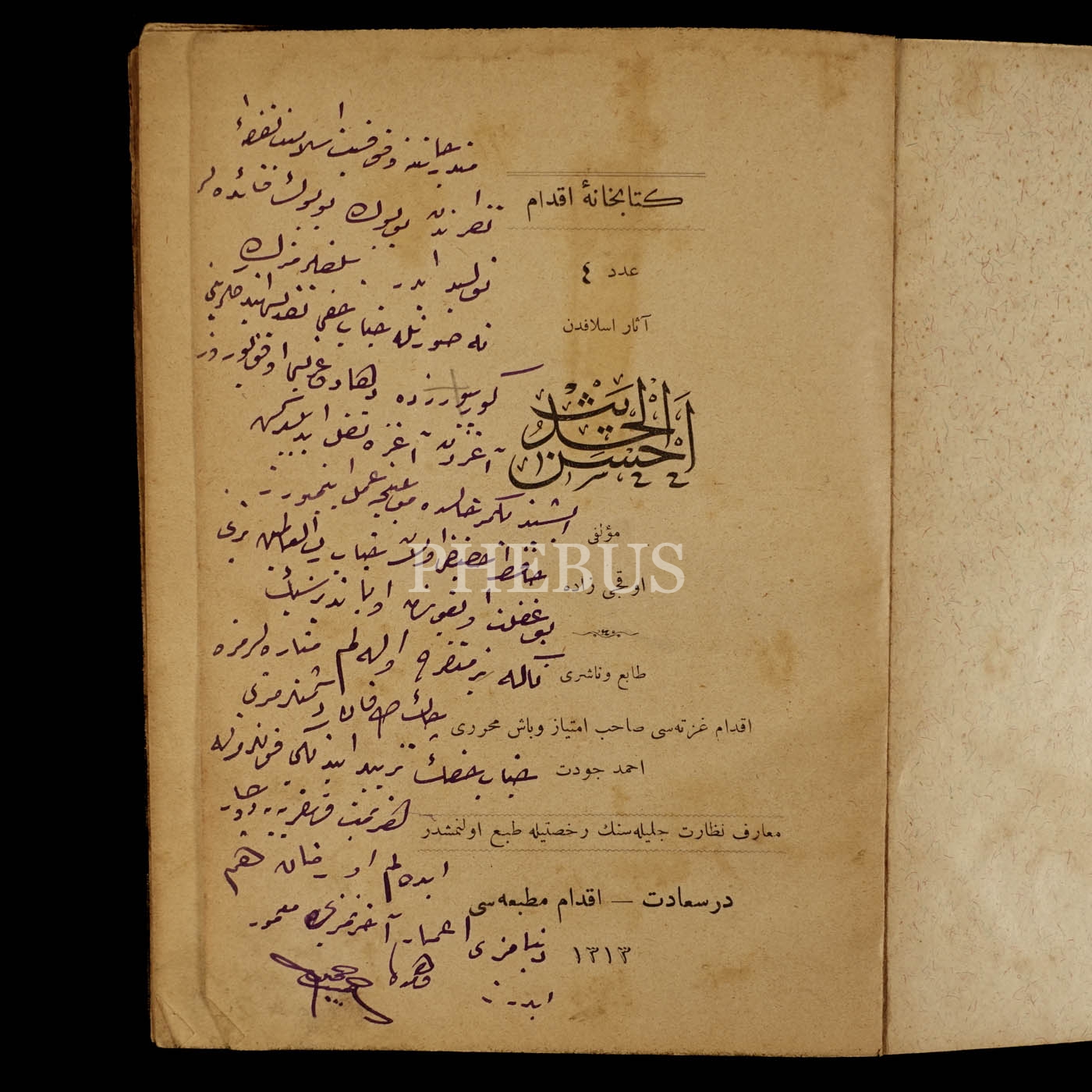 AHSENÜ´L-HADİS, Okçuzade Mehmed Şahi, 1313, İkdam Matbaası, 256 sayfa, 14x21 cm...