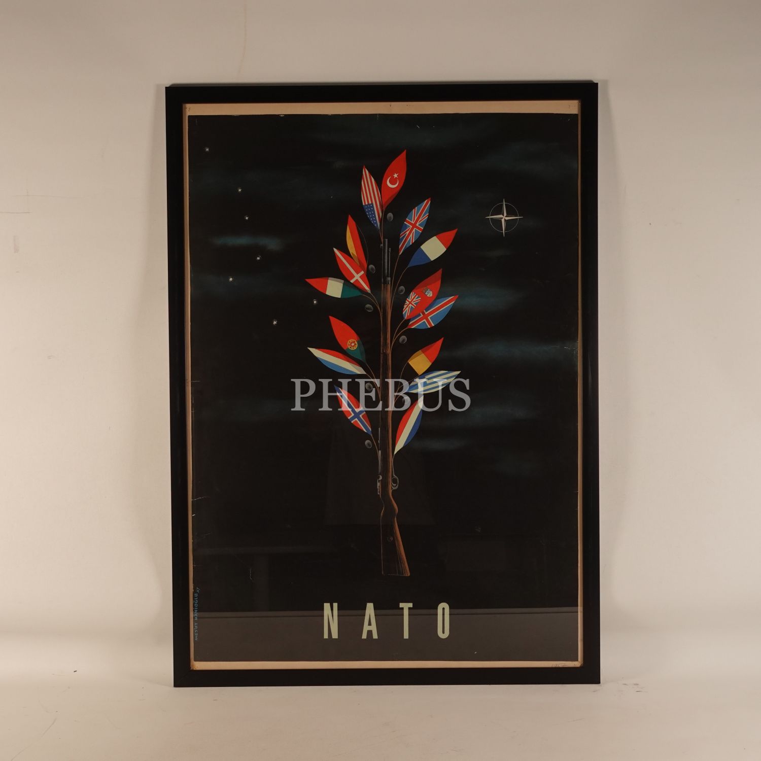 Mesut Manioğlu´nun 1957 tarihli ıslak imzasıyla NATO konulu orijinal afiş çizimi, çerçevesiyle birlikte 76x106 cm...