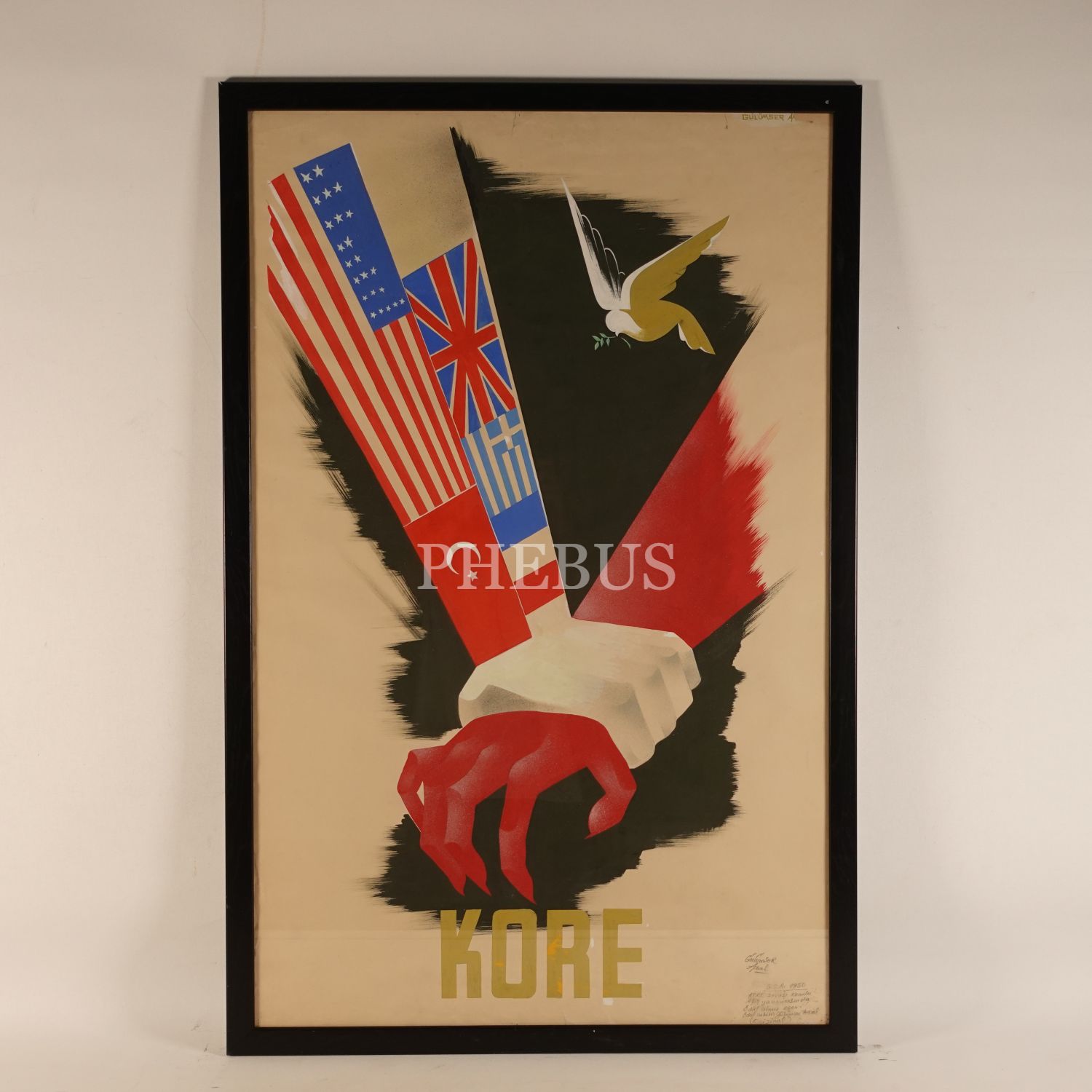 Gülümser Aral´ın ıslak imzasıyla Kore Savaşı konulu orijinal afiş çizimi, çerçevesiyle birlikte 70x109 cm...