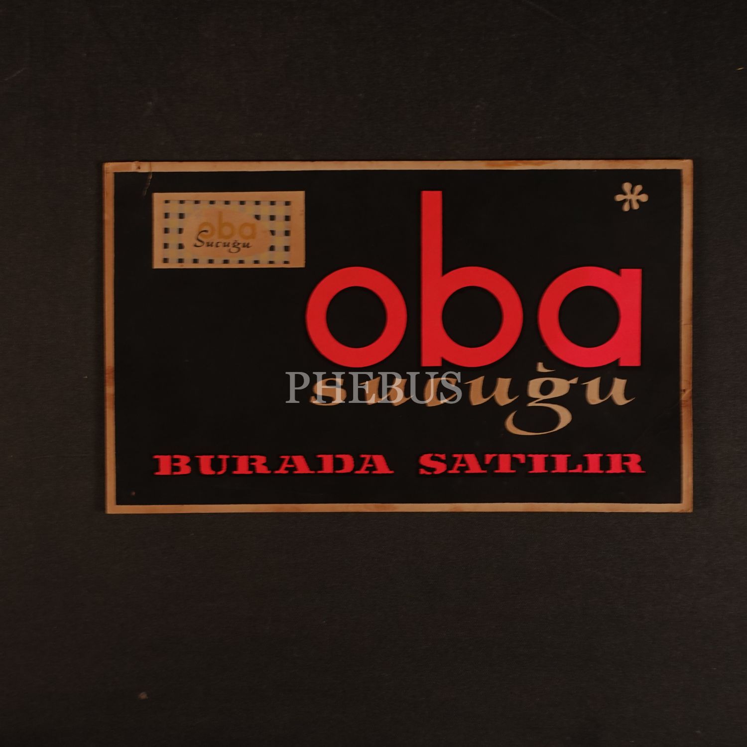 "Oba Sucuğu Burada Satılır" yazılı reklam kartoneti, 30x18 cm...