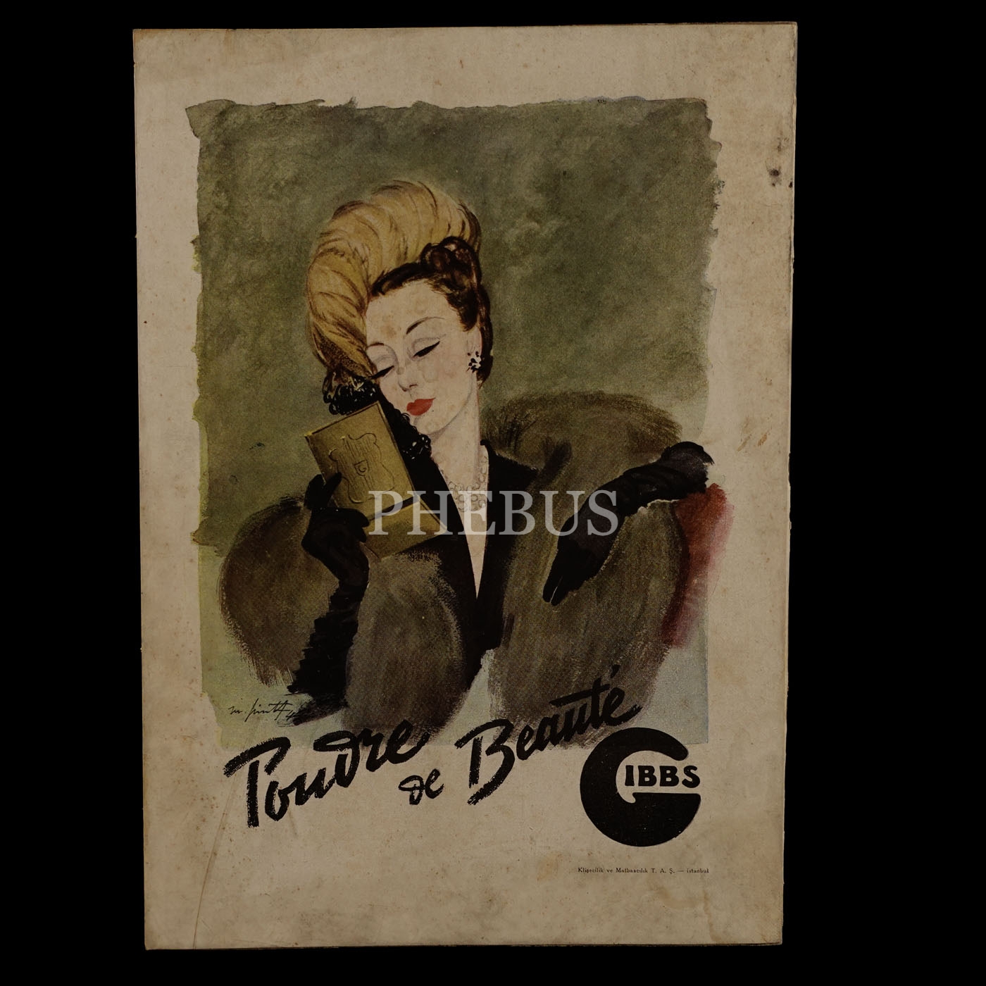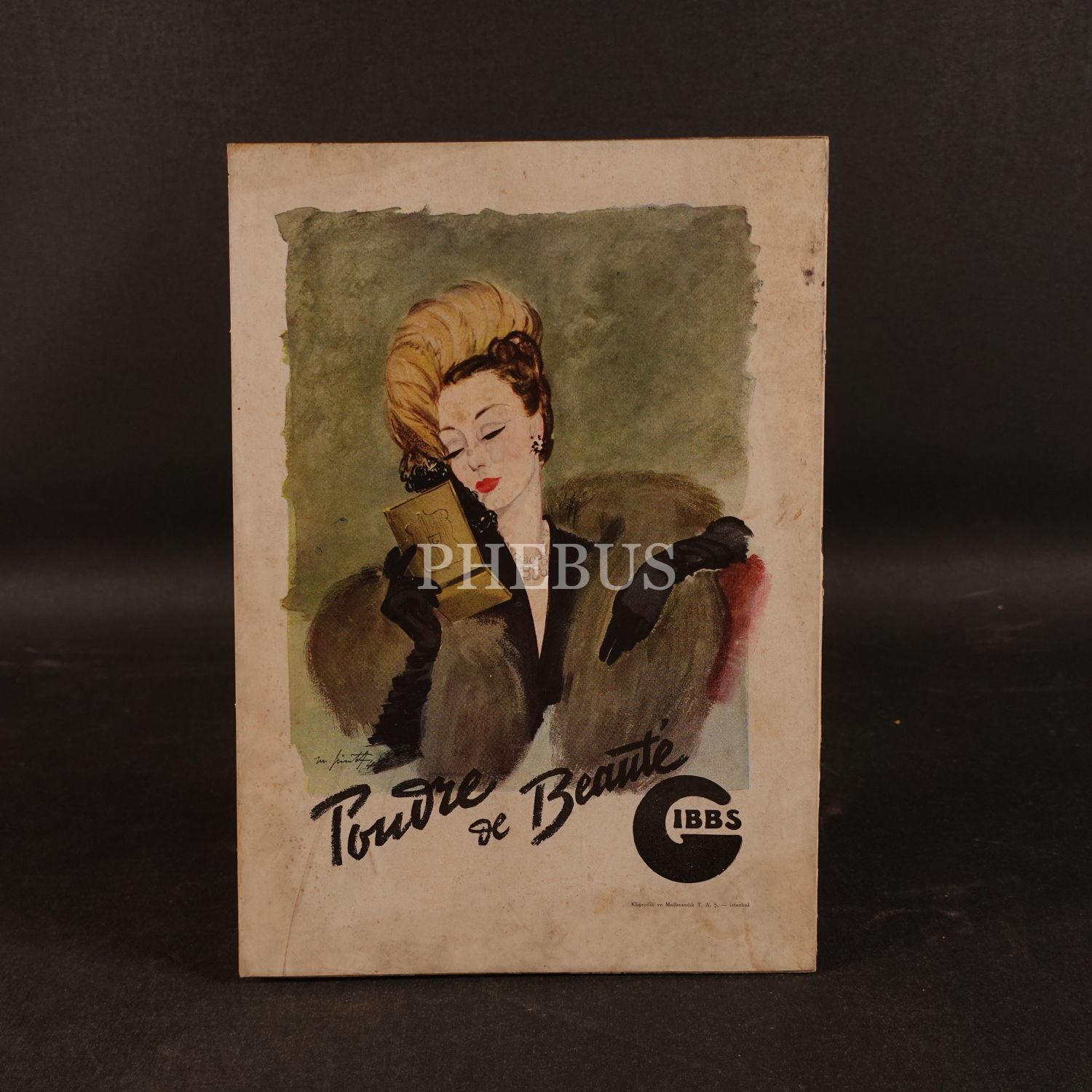 Gibbs Pudraları reklam kartoneti, Klişecilik ve Matbaacılık T.A.Ş., 24x34 cm...
