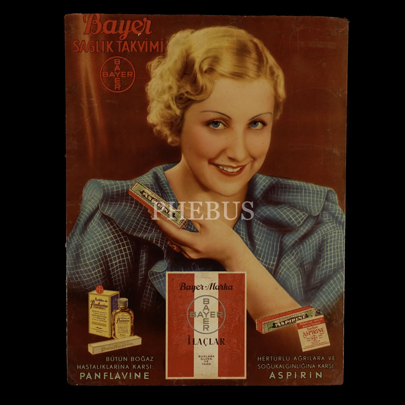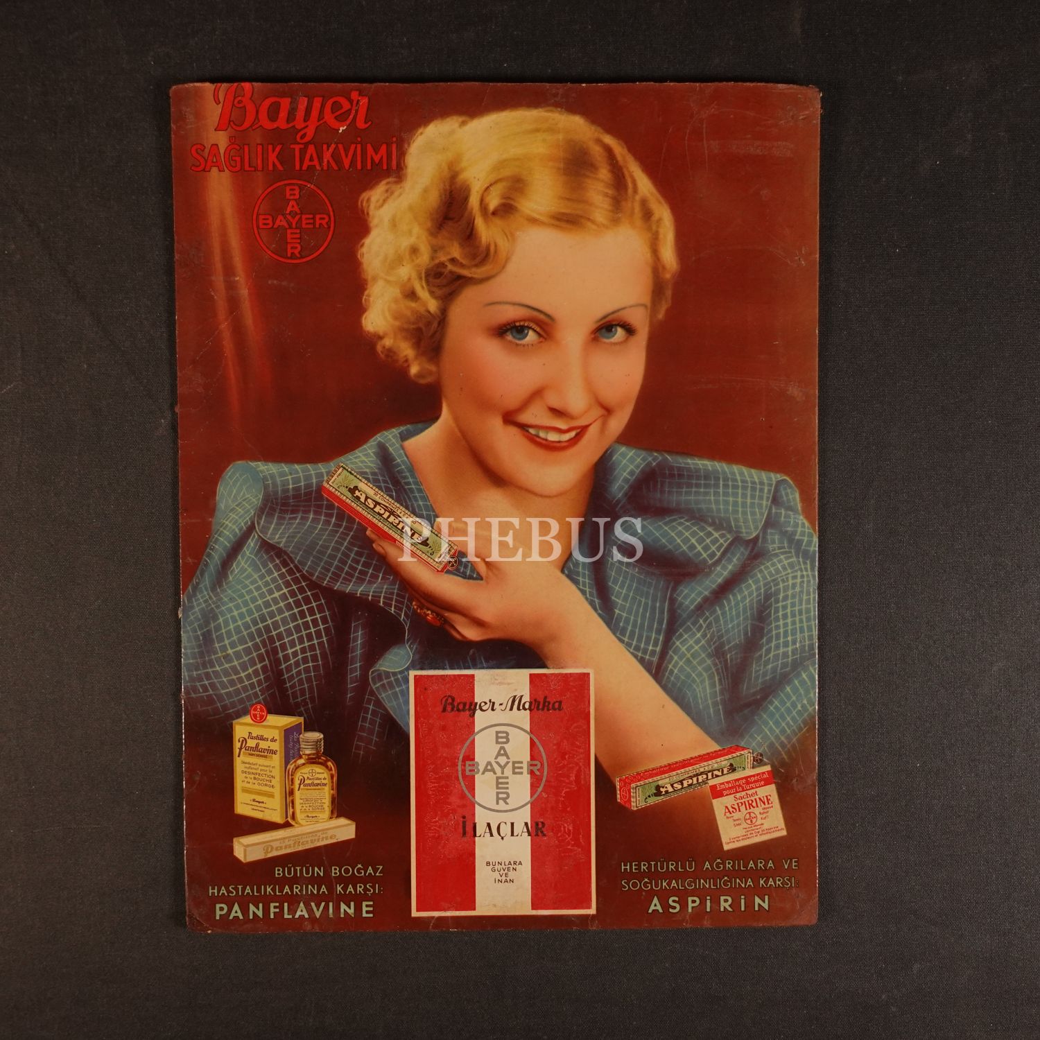 "Panflavine" ve "Aspirin" reklamlı BAYER Sağlık Takvimi, Türkiye Basımevi (İstanbul), 29x39 cm...