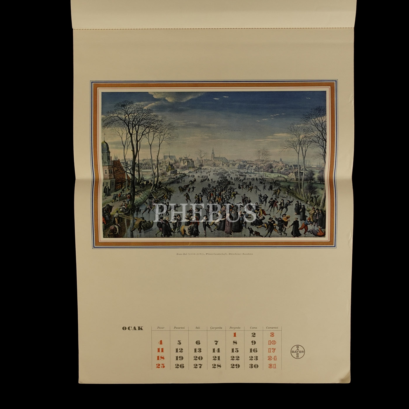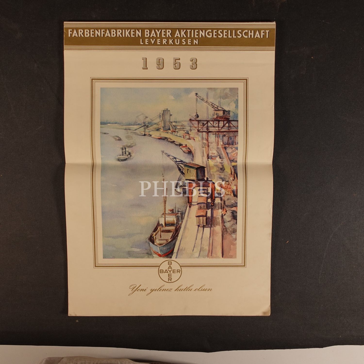 "Yeni Yılınız Kutlu Olsun" yazılı 1953 BAYER takvimi,