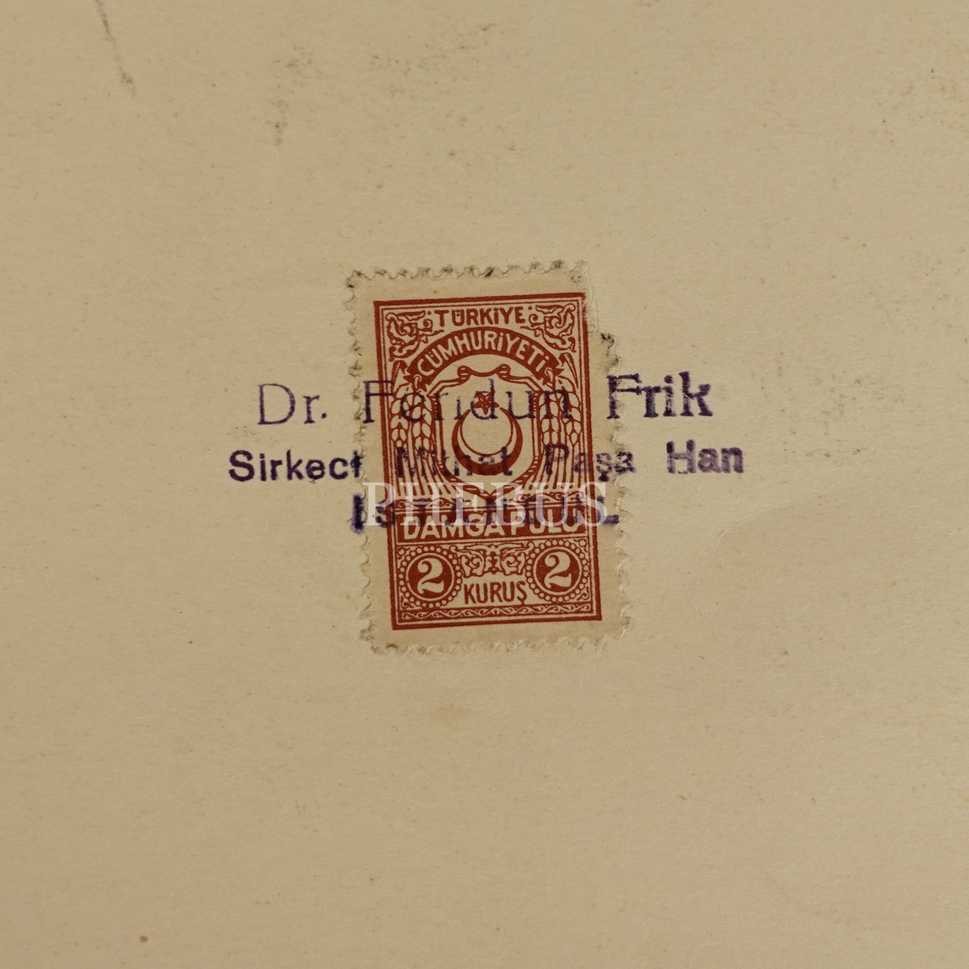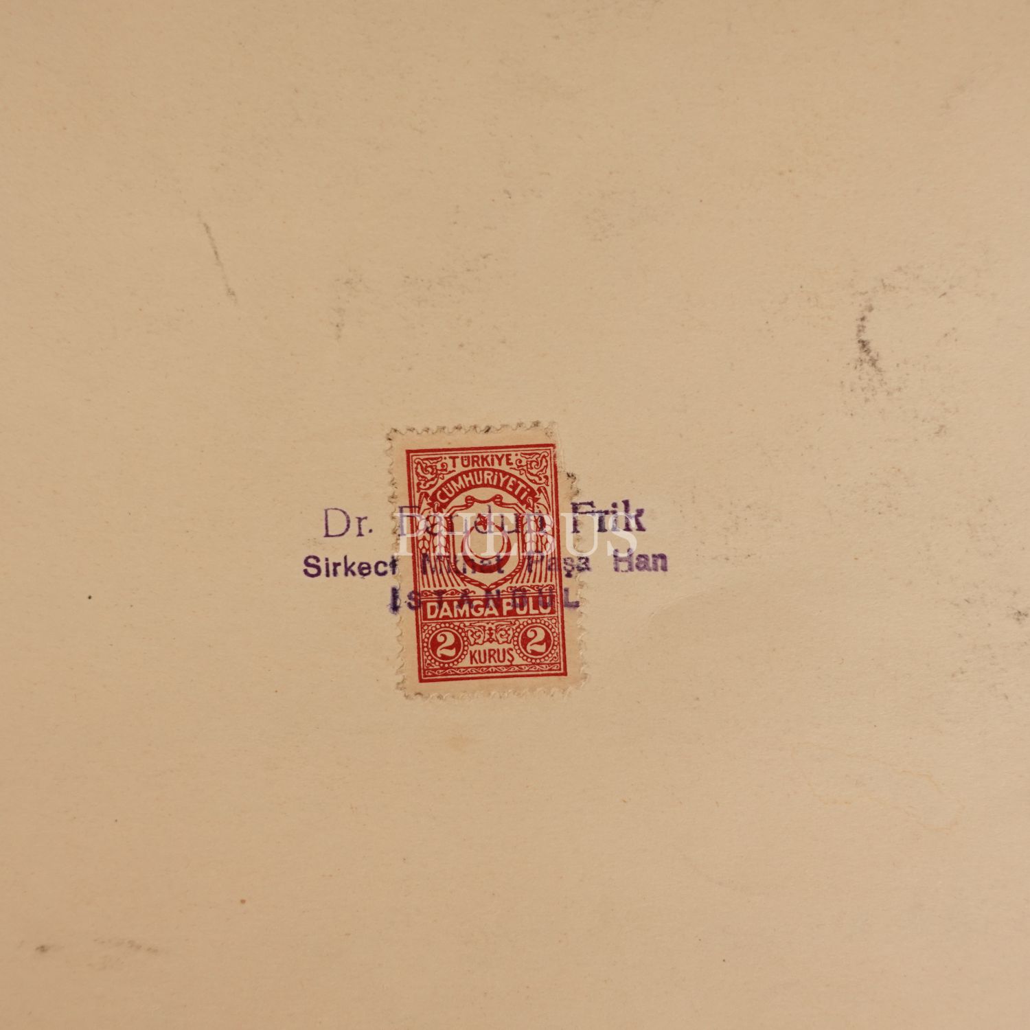 İçerisinde çeşitli sanatçıların yer, mekan, kostüm gravürleri yer almaktadır. Arka yüzü Damga Pullu ve "Dr. Feridun Frik - Sirkeci Mithat Paşa Han, İstanbul" damgalı.