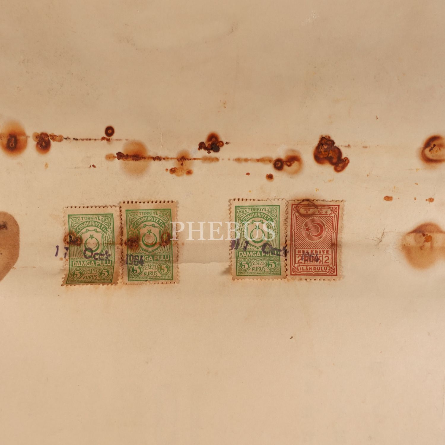 Arka yüzü Belediye İlân ve Damga Pullu.