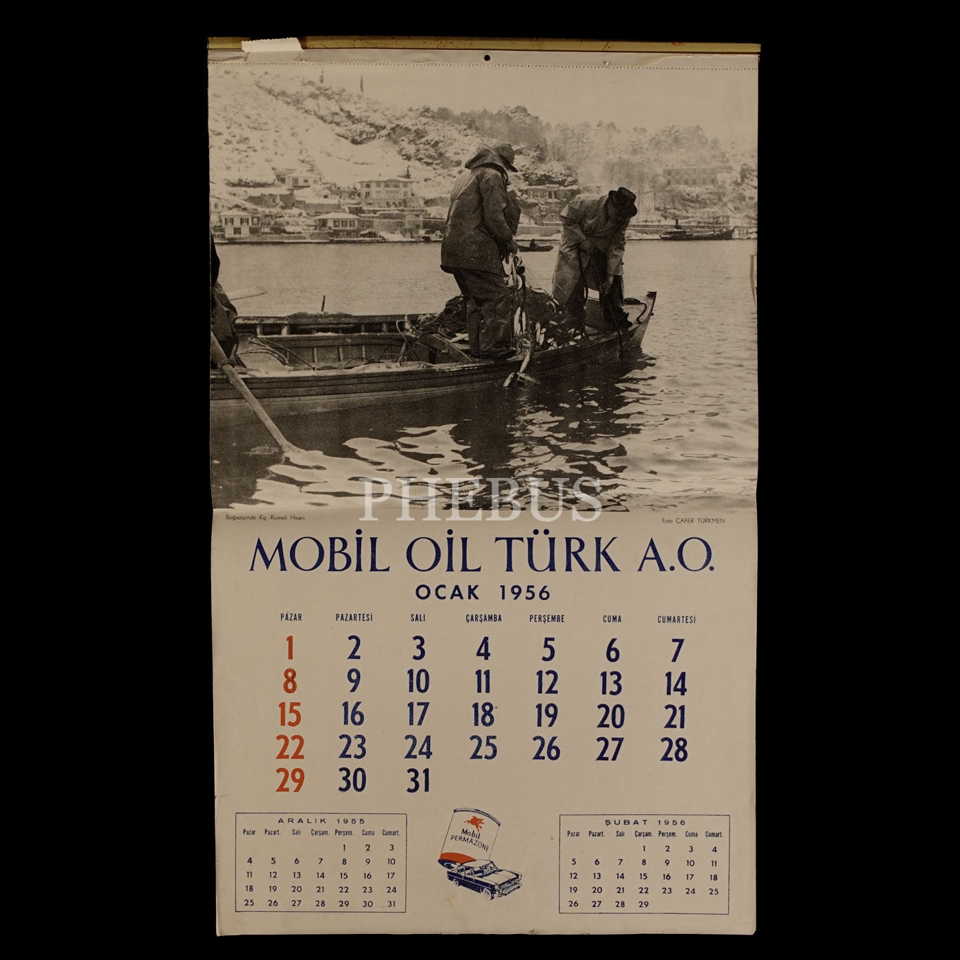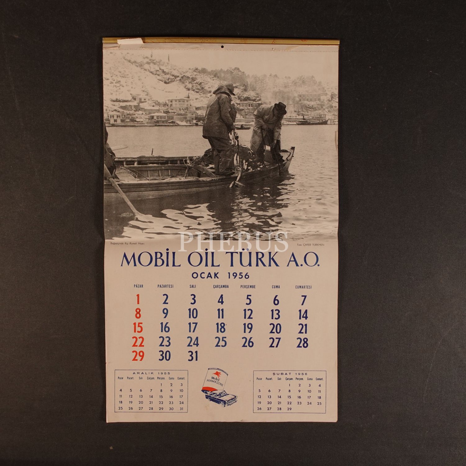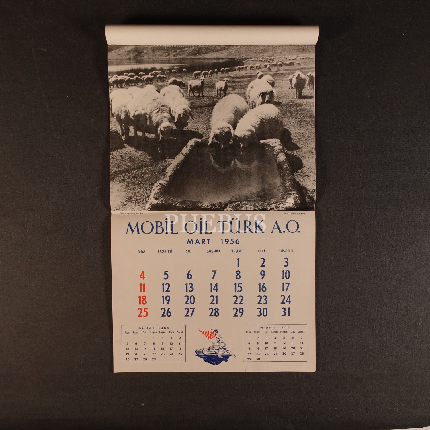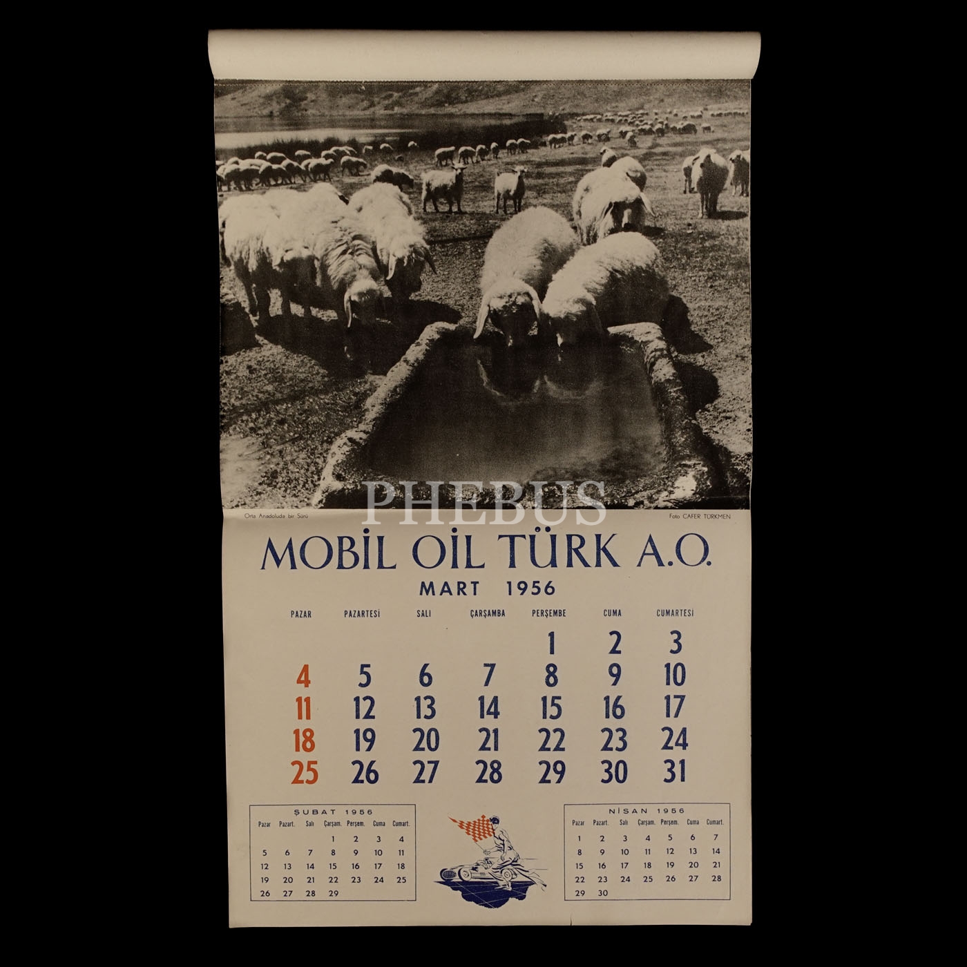 MOBİL OİL TÜRK A.O. reklamlı 1956 duvar takvimi, 30x49 cm...